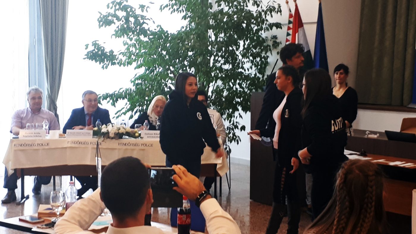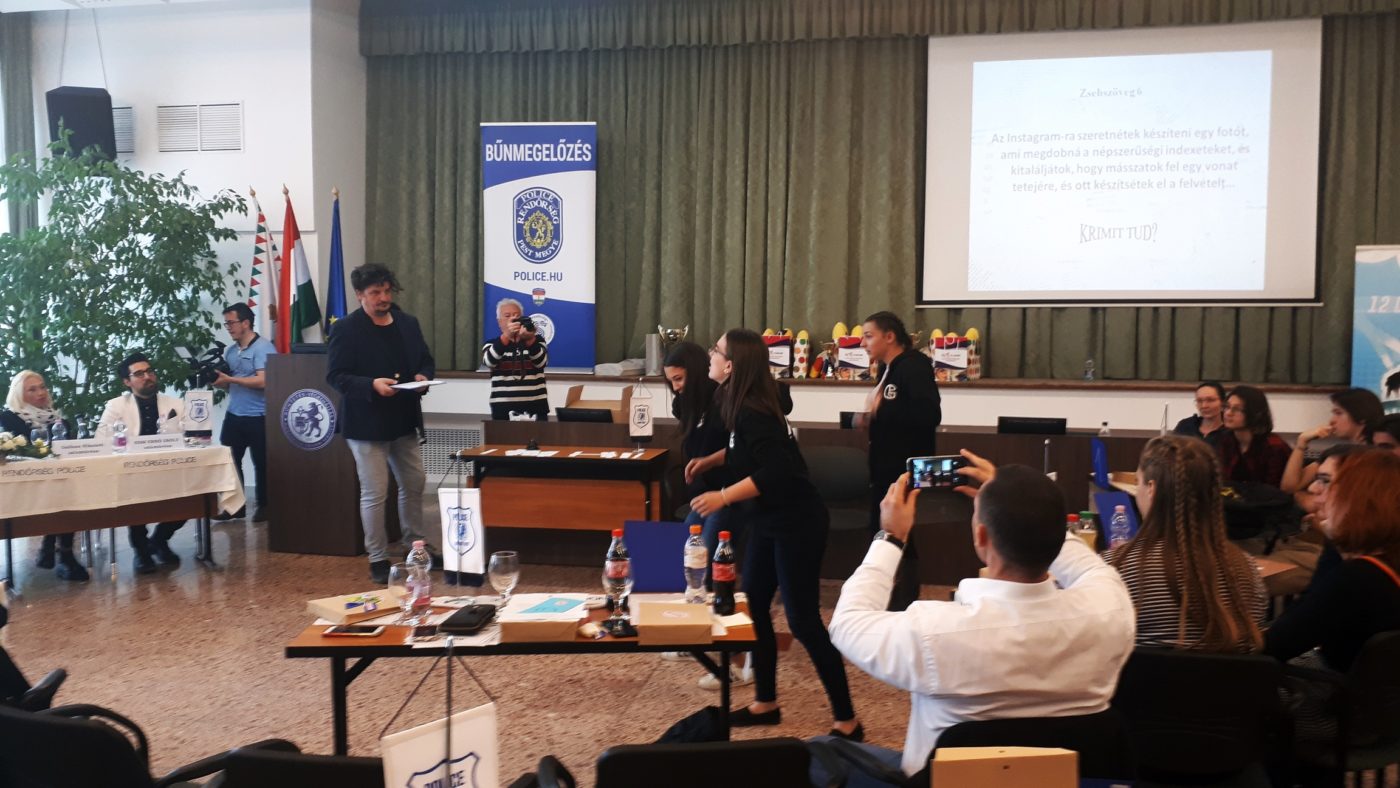Az első feladat az úgynevezett „Zsebszöveg” volt. Ebben a csapatoknak egy olyan szituációt kellett előadniuk, amit a vetélkedő előtt egy órával ismerhettek meg. A Békés megyei lányoknak azt kellett eljátszaniuk, hogy ketten kitalálják, milyen vicces és menő lenne, ha egy mozgó vonat tetejéről szelfiznének. Harmadik társuknak pedig meg kellett győznie őket arról, hogy ez veszélyes. A csapat játékán látszott, hogy korábban sokat foglalkoztak bűnmegelőzéssel és felkészülten érkeztek a versenyre, emellett pedig a csapattagok kiváló színészi képességei is megmutatkoztak. A második feladat a „Ki vagyok én?” elnevezésű játék volt. Itt egy bűnmegelőzési szituáció eljátszása közben a részvevőknek rávezető mondatok segítségével ki kellett találniuk, hogy a szervezők milyen tárgy, illetve melyik meseszereplő, vagy híres ember képét rögzítették a fejpántjukra úgy, hogy azt csak társai láthatták, ő maga nem.