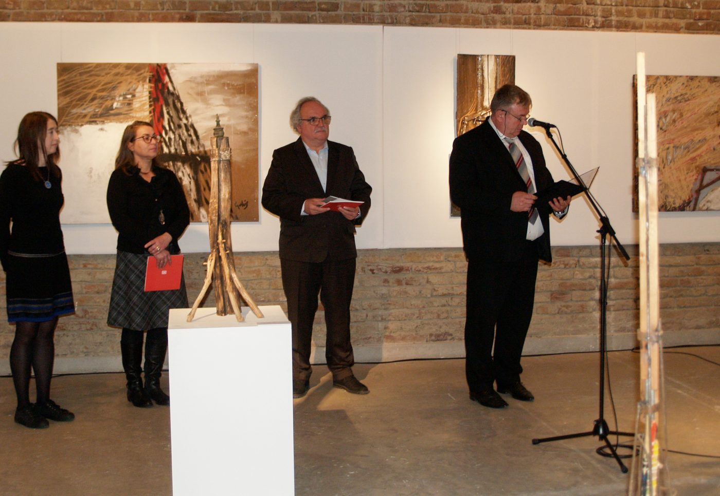 A megnyitón elsőként Ando György múzeumigazgató köszöntötte a megjelenteket. Kiemelte, hogy Gubis Mihály egy nyitott és őszinte ember volt, aki nem szerette a kötöttségeket. Könnyen és szívesen teremtett kapcsolatot bárkivel. Kiss Tibor alpolgármester beszélt arról, hogy a 12 évvel ezelőtt tragikus balesetben elhunyt művészt hozzátartozói, barátai és tisztelői a mai napig rajongással szeretik. Beszéde megírásakor arra kereste a választ, mi állhat emögött a mérhetetlen szeretet mögött. A tárlatot Wehner Tibor művészettörténész nyitotta meg. Ő tájékoztatott arról, hogy Gubis Mihály művészetében visszaköszön a nyomdászi indulás. Szitakeretre erősített, többszörösen felhasznált szitavászonra készítette el megrázó sorozatát, melyet a helyi közönség valójában még nem is látott.