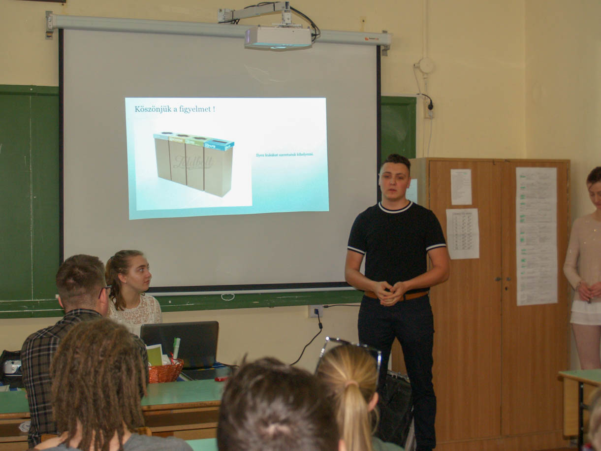 A rendezvénnyel kapcsolatban Kovács Ákos, az intézmény diákja megosztotta, a céljuk, hogy a fiatalok egy zöldebb, élhetőbb világban éljenek. Ő személyesen kezdeményezte azt, hogy minden osztályteremnek legyen saját szelektív hulladékgyűjtője. Többször előfordult, hogy a diákok a szeme láttára dobták a műanyagot a kommunális hulladéktárolóba, holott igen közel megtalálták volna a szelektív edényt is. Az Andrássy Úti Társaskörben látott ilyen, akár az osztálytermekben is elhelyezhető gyűjtőket. Felvette a kapcsolatot a gyártóval, kiszámolta, hogy mennyibe kerülne a kukák kihelyezése. Fejenként 250 forintot kellene a diákoknak befizetni. Ezen a napon azért járták az osztályokat, tartottak előadásokat, hogy meggyőzzenek mindenkit, a zöldebb környezet megér ennyit.