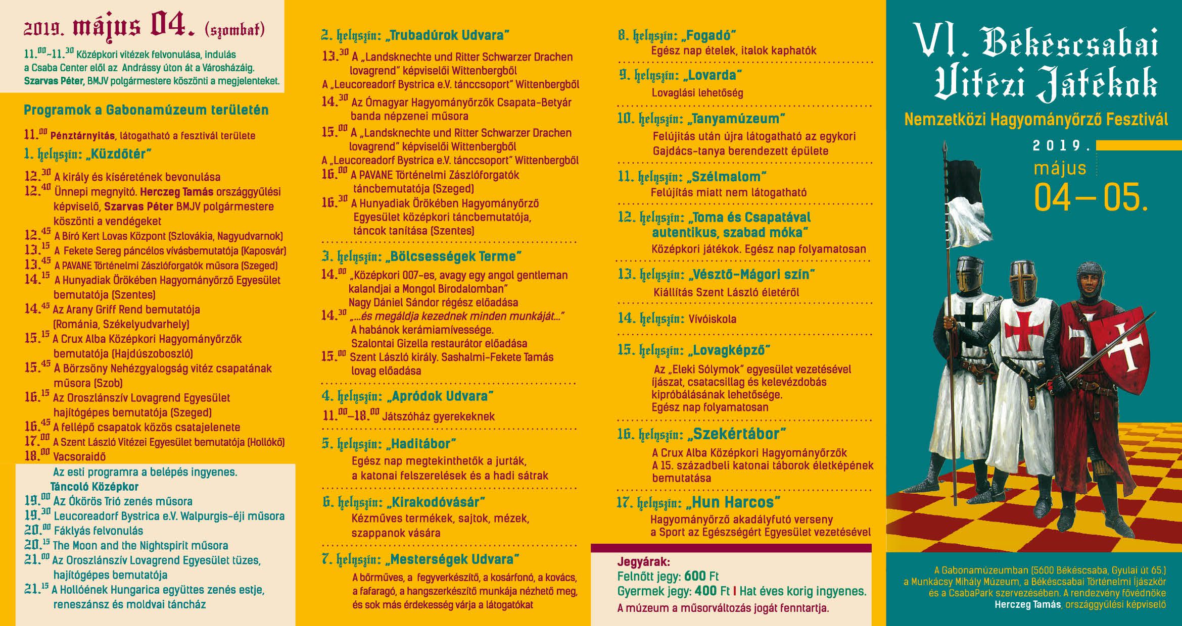 A békéscsabai Munkácsy Mihály Múzeum május 4-én és 5-én ismét megrendezi a Békéscsabai Vitézi Játékok elnevezésű nemzetközi hagyományőrző történelmi fesztivált a Gabonamúzeum területén. A kétnapos rendezvény programjai között számos újdonságot és több visszatérő elemet is találhatnak az érdeklődők.