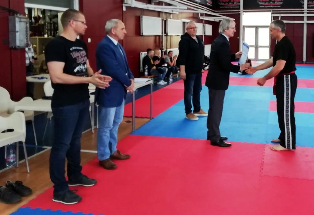 A vizsga a szokásos módon zajlott le. Technikai kombinációk, térérzékelés, védés-ellentámadás, küzdelem különböző szabályrendszerben, bot és kés támadás elleni önvédelem, puszta kezes, illetve eszközök, formagyakorlatok bemutatása. A végére maradtak az erőnléti gyakorlatok, vagyis a vizsgázóknak este volt mit kipihenni. A vizsgán tizenhárman tettek sikeres vizsgát. A Békés Megyei Harcművész Szövetség tagjai közül Andrékó Zoltán (Contact KTSE Orosháza), és Opauszki Dávid (József Attila Lakótelepi TSE, Békéscsaba) tett sikeres vizsgát és lett tagja a fekete öves harcművész mesterek családjának.