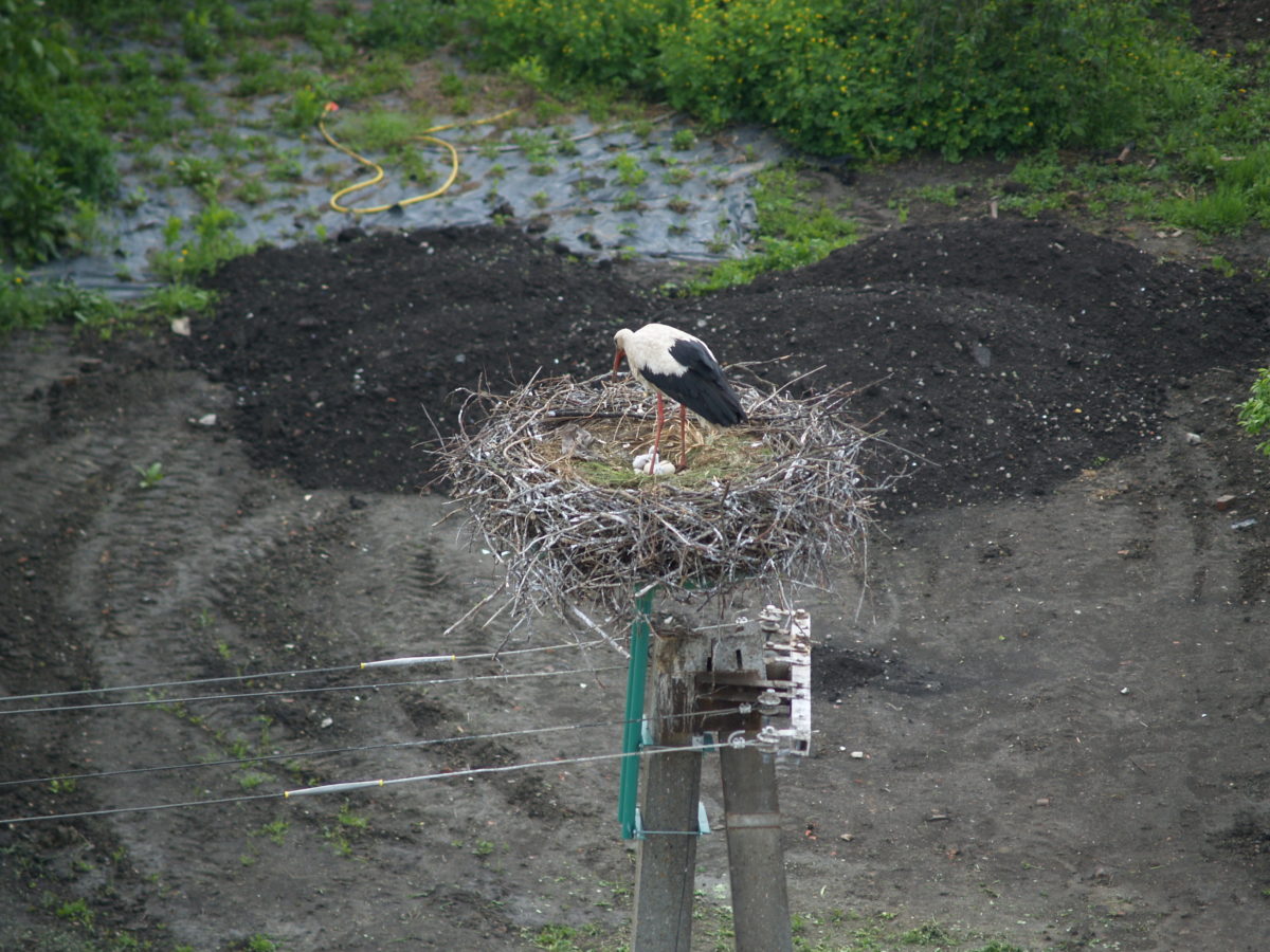 Ha szerencséjük van, a szemfüles madármegfigyelők néha megpillanthatják a tojásokat a Bartók Béla úti gólyafészekben, amikor a felnőtt gólya éppen rendezgeti szálláshelyüket.