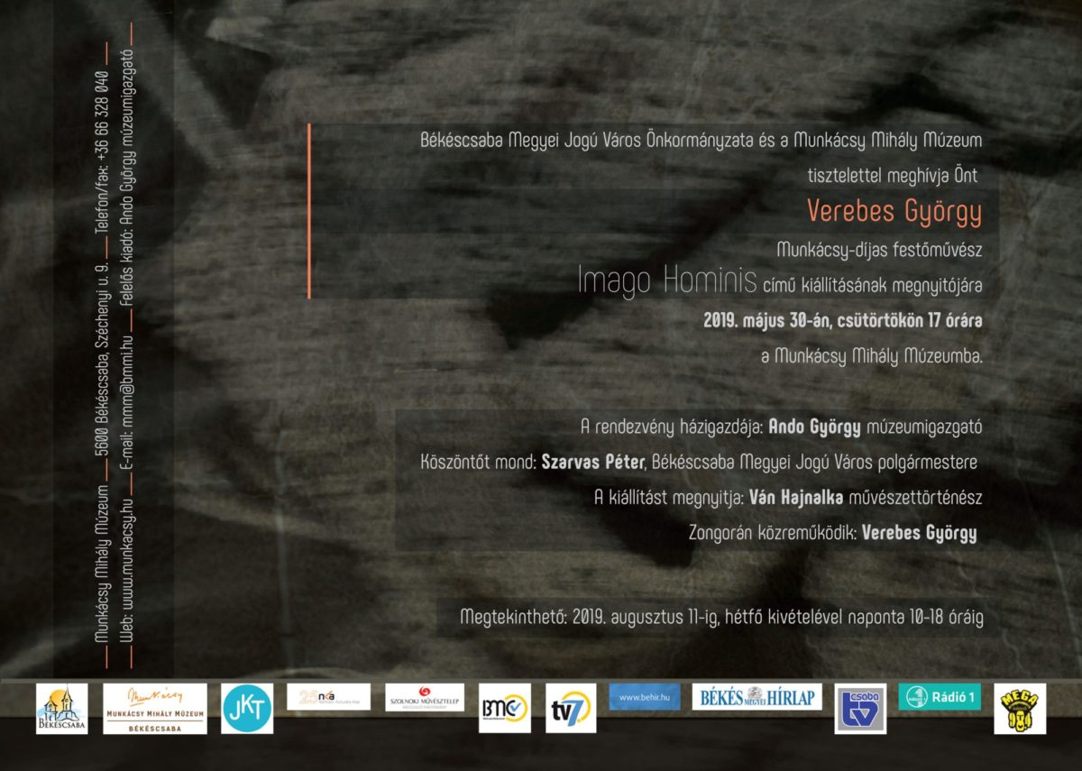 2019. május 30-án, csütörtökön 17 órakor Imago Hominis címmel Verebes György Munkácsy-díjas festőművész alkotásaiból nyílik tárlat a Munkácsy Mihály Múzeum Tégla Termében. A kiállításmegnyitó rendezvényre szeretettel várnak minden érdeklődőt!
