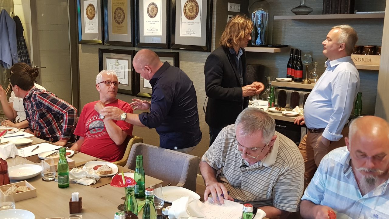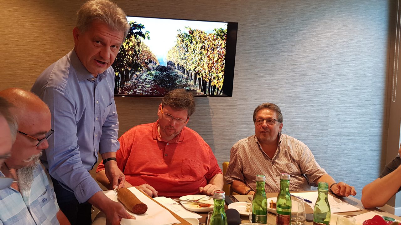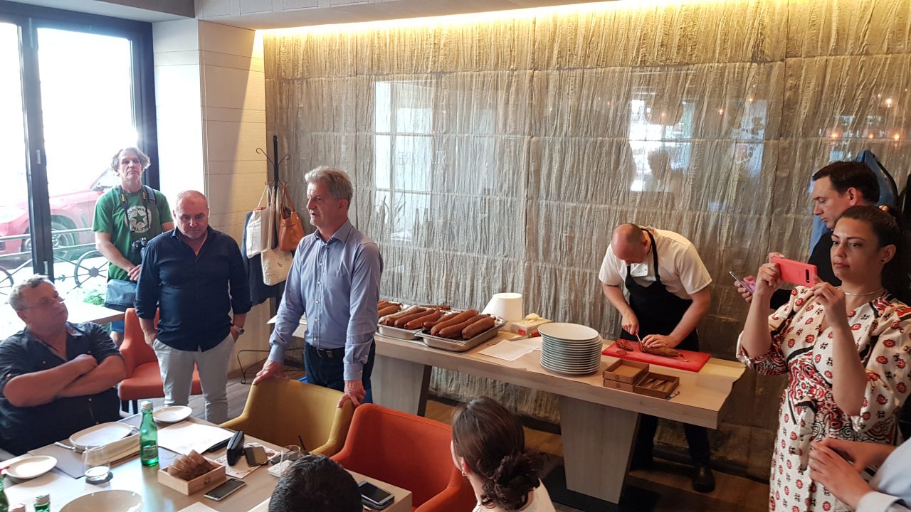Szarvas Péter megköszönte a Dining Guide-nak, hogy létrejöhetett ez a nap. A jó bornak is kell cégér – ezért a vastagkolbászra is ráfér a népszerűsítés.