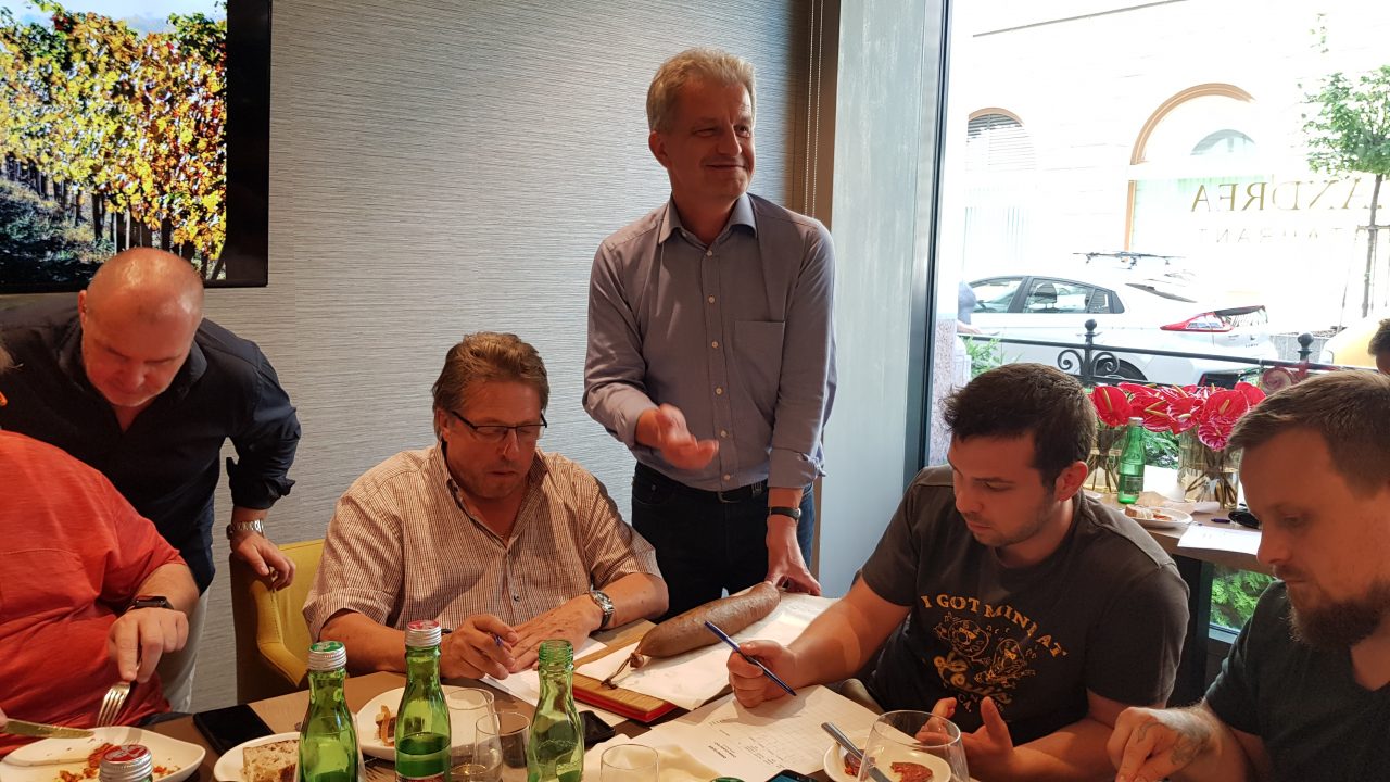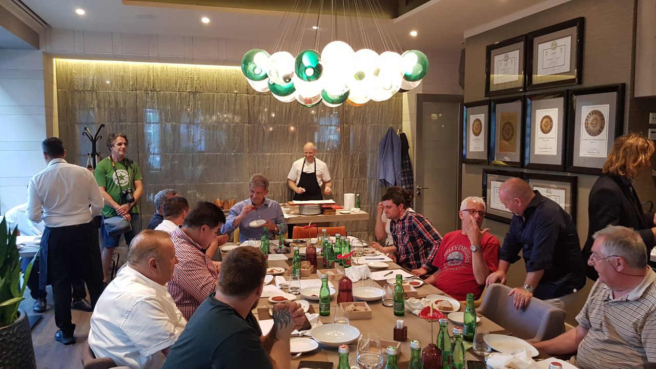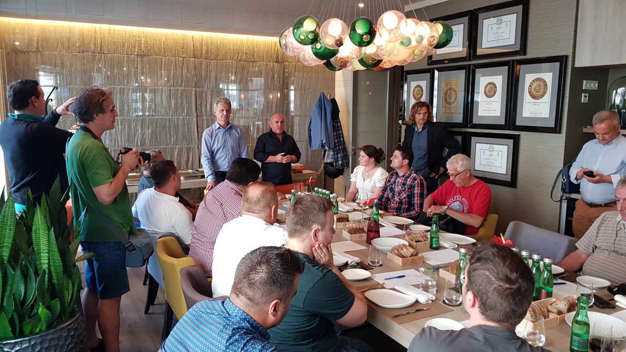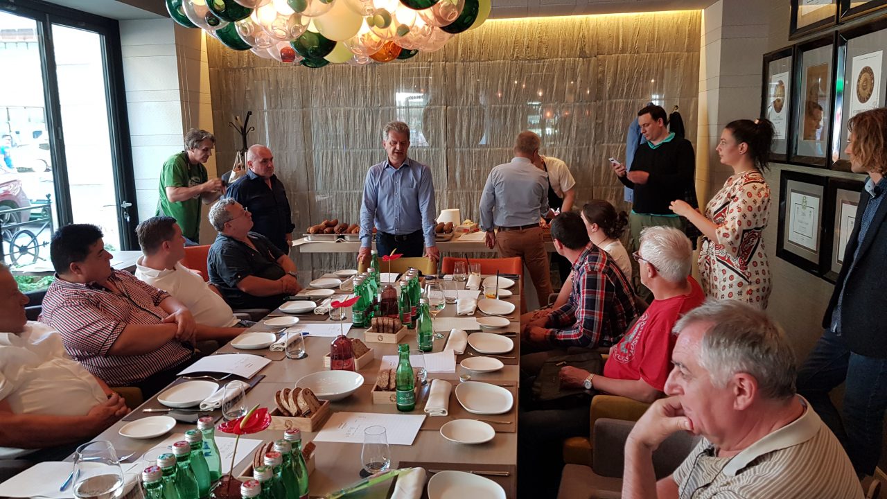 Szarvas Péter megköszönte a Dining Guide-nak, hogy létrejöhetett ez a nap. A jó bornak is kell cégér – ezért a vastagkolbászra is ráfér a népszerűsítés.