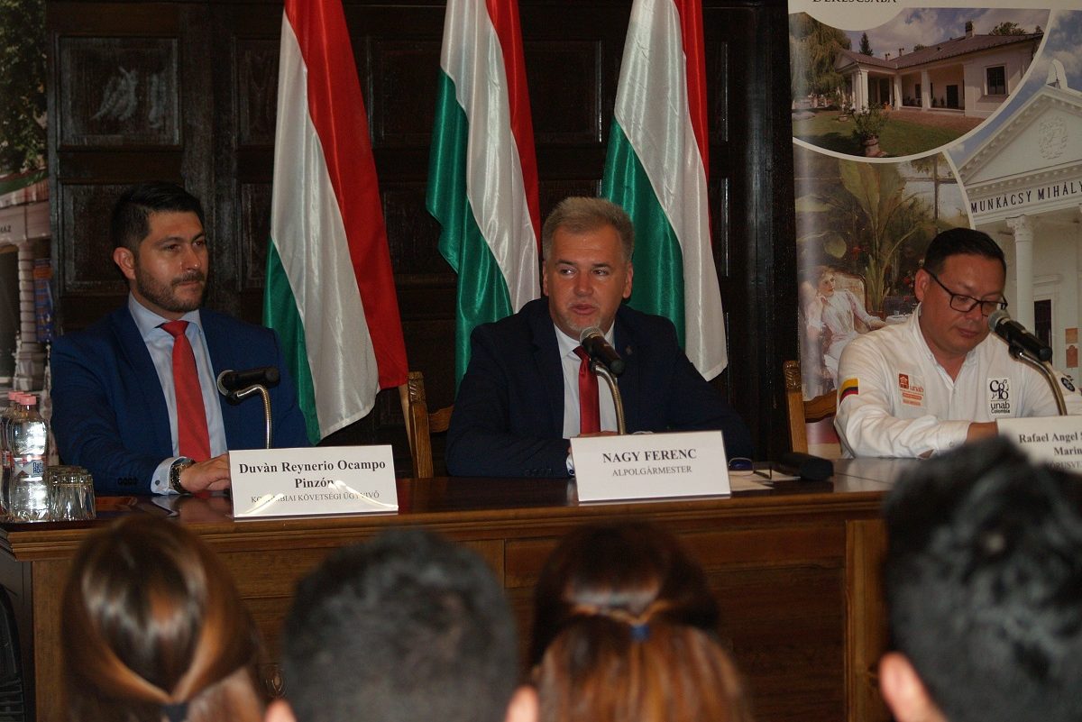 Ezt követően a diplomáciai kapcsolatokat megerősítendő eseményen a kolumbiai tanácsos is bemutatkozott. Elmondta, hogy örömmel tölti el többek között az is, hogy a Magyar-Kolumbiai nagykövetség most egy éves, és ez az első alkalom, hogy Békéscsabára látogattak. Továbbá, hogy Kolumbia idén ünnepli függetlenségének 200. évfordulóját, és a követség szeretné megmutatni, hogy az országuk mennyire erős, és gazdag kultúrával rendelkezik.
