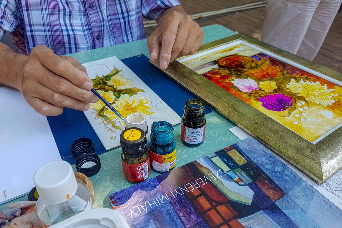 Idén már 15. alkalommal szervezték meg a Békéscsabai Nemzetközi Művésztelepet. A néhány napos program során a festők általában előadásokon vesznek részt, megismerik a környék nevezetességeit, és természetesen festenek. Az elmúlt másfél évtizedben pedig egy-egy napra a város lakói is lehetőséget kaptak arra, hogy elvegyüljenek a megyeszékhelyre érkezett alkotókkal. Így történt ez ma is. A festők ismét kitelepültek a Szent István térre, hogy ott néhány szót váltsanak az érdeklődőkkel és ihletet merítve a környezetből, újabb csodás képekkel kápráztassák el a várost.