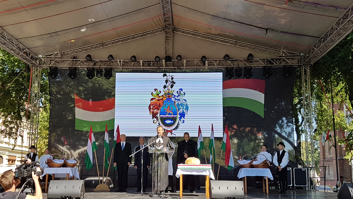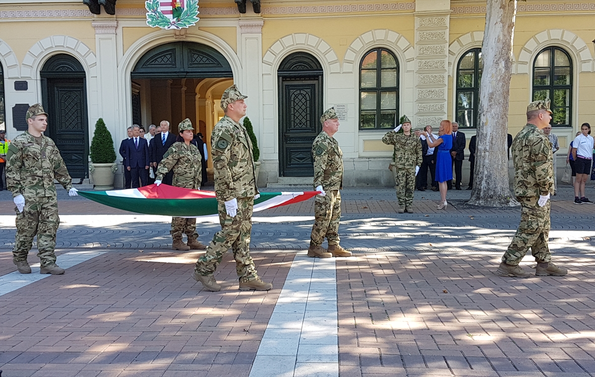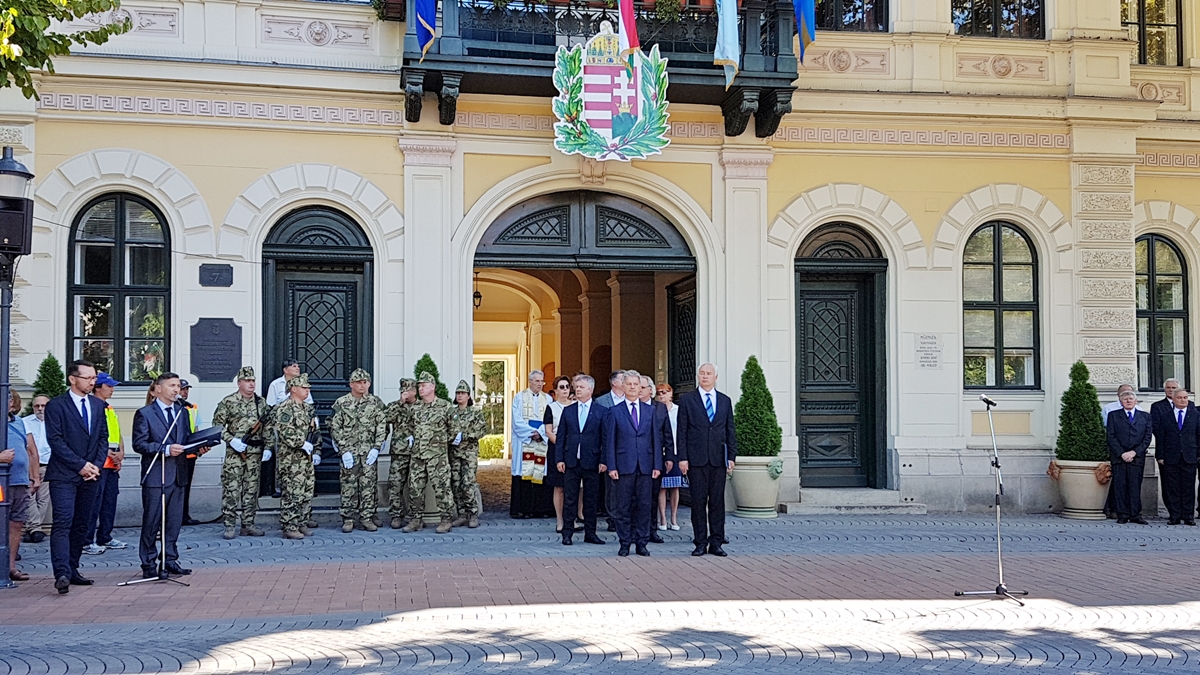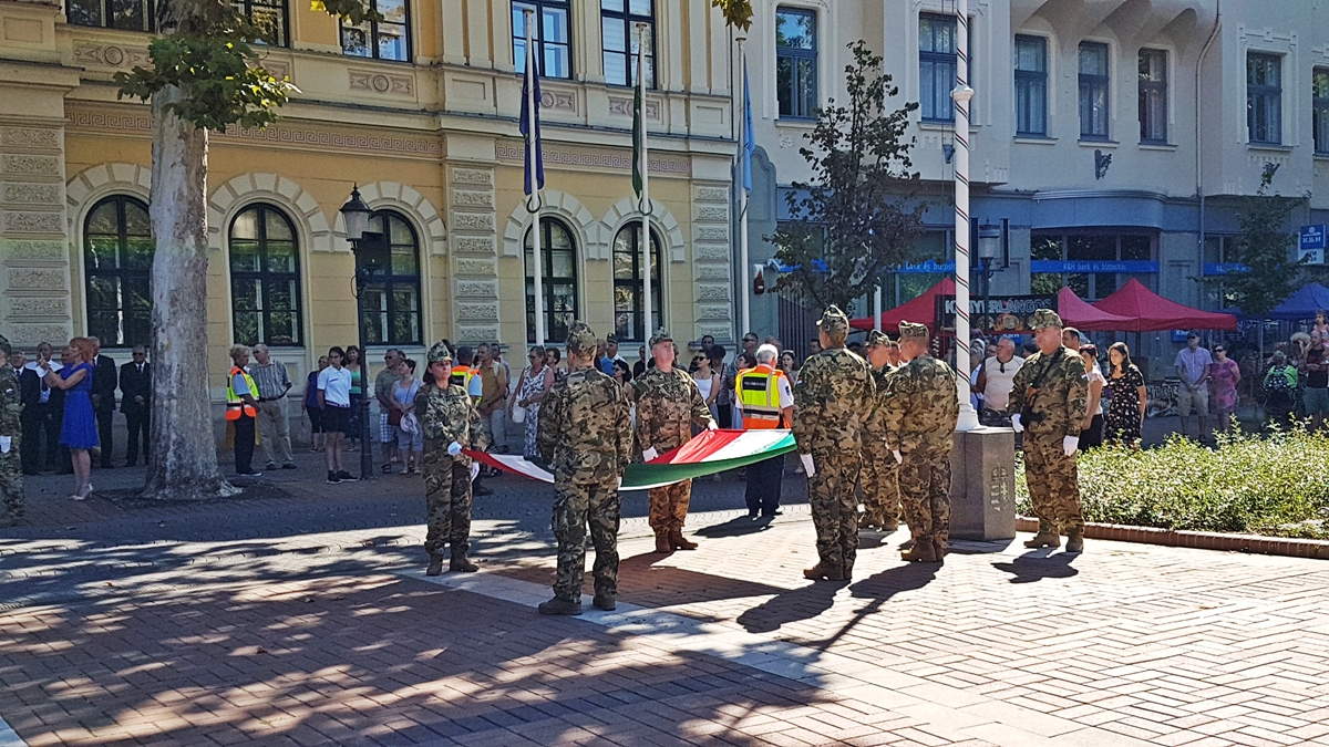 Békéscsabán, ahogy a megye számos településén, programsorozattal ünneplik augusztus 20-án az állam alapítását. A rendezvény zászlófelvonással kezdődött, majd kenyérszenteléssel, elismerések átadásával folytatódott.