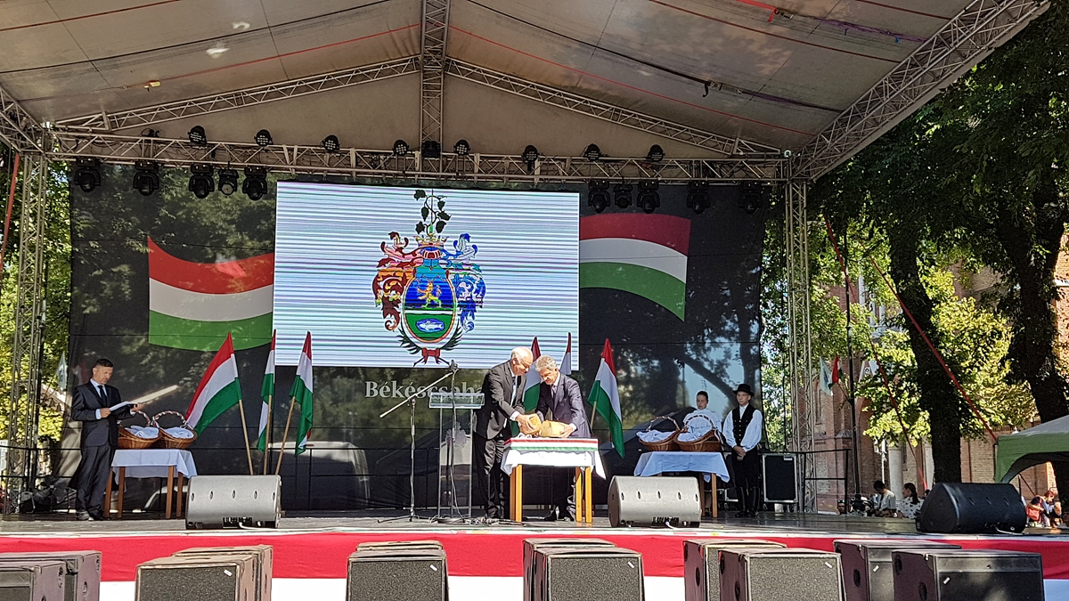 Végül Herczeg Tamás ünnepi gondolatai zárták a délelőtti főtéri programot. A képviselő emlékeztetett arra, hogy a kenyér, mely Isten adománya, a föld terméséből válik kenyérré. Lényegi tartalma az az emberi munka is, mely az isteni ajándékot feldolgozza. Ez a kenyér a mienk, hiszen a búza valahol a megyében érett, majd a Békés megyei pékek dolgozták fel a lisztet és sütötték kenyérré. A kenyér minden egyháznál kiemelkedő szimbólum, és egyénenként is hordozhat külön jelentéseket. Az új kenyér létrejöttéhez is összefogás, együttműködés kell, ahogy az élet minden területén. A megszegett kenyér is bizonyítja, a város lakóinak szükségük van egymásra.