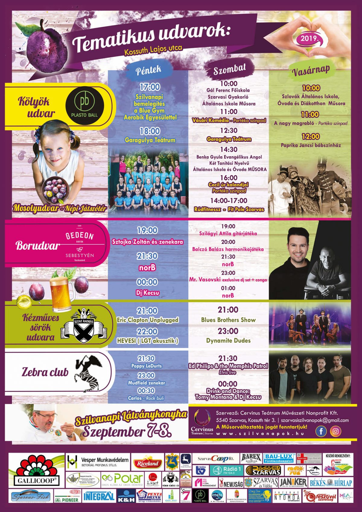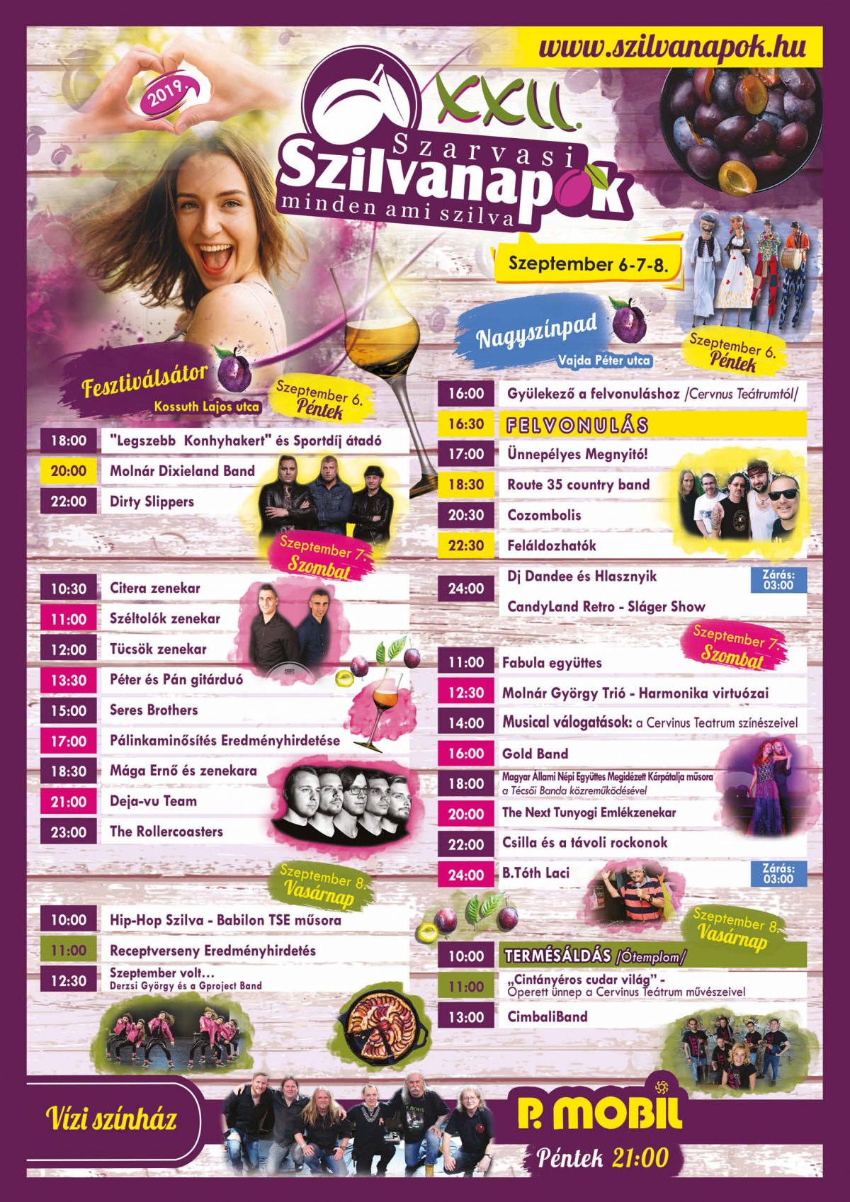 Idén már 22. alkalommal szervezik meg a Szarvasi Szilvanapokat szeptember 6-8 között. Délkelet-Magyarország egyik legnagyobb gasztrokulturális fesztiválja ezúttal is a szarvasi szilva népszerűsítését tűzte ki célul. A szervezők ezt ötvözik a hagyományok bemutatásával, a gyümölcsből készült különféle ételekkel és italokkal, valamint koncertekkel, családi- és gyermekprogramokkal, utcabállal. A részletes programot a rendezvény plakátján, és a szilvanapok.hu-n találják.
