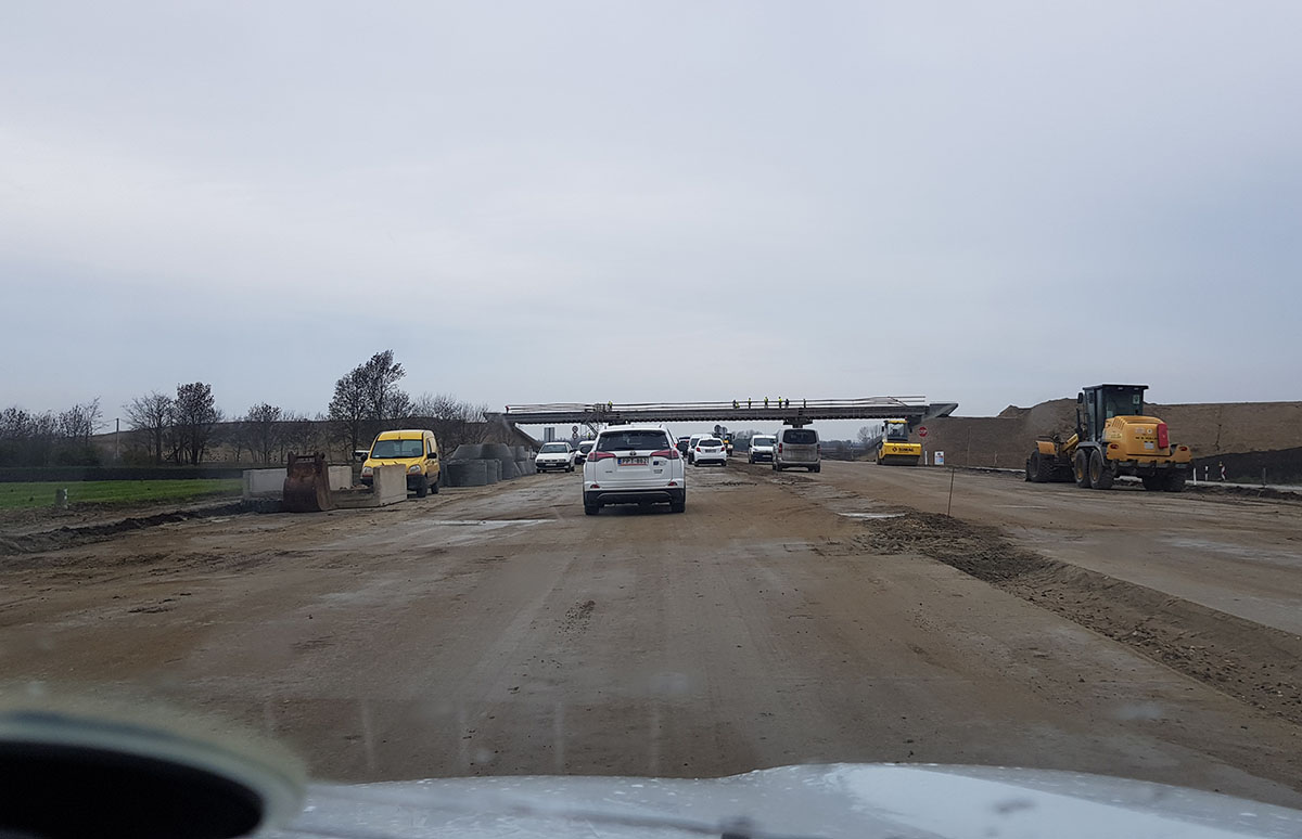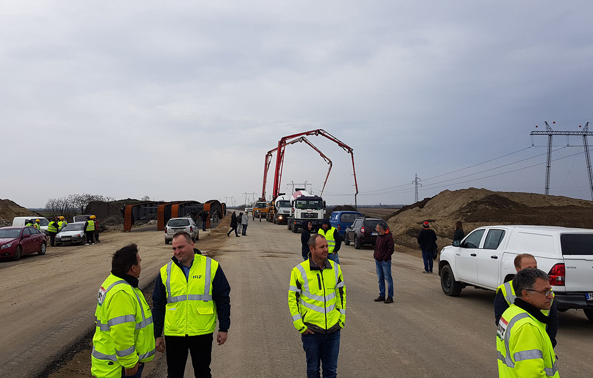 A sajtótájékoztató helyszínén éppen pályaszerkezet-építés, töltésépítés zajlott. A hidak, műtárgyak vonatkozásában (a szakaszon) mindenütt folyik a munka – mondta el Pántya József, aki szerint a 2021 januári határidőt jelenleg semmi nem veszélyezteti, sőt, akár egy kicsivel hamarabb is végezhetnek a munkálatokkal.