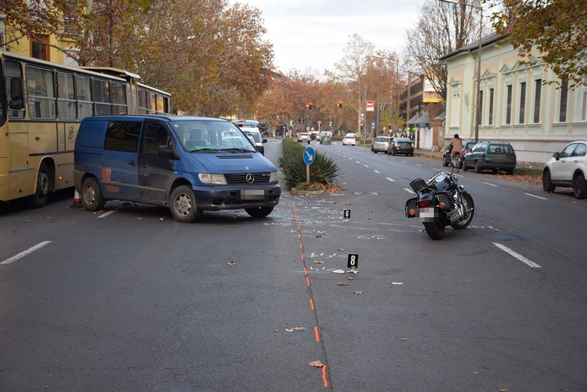 Békéscsabán, az Andrássy úton, 14 óra után néhány perccel egy kistehergépkocsi motorkerékpárossal ütközött, a motor vezetője súlyos sérülést szenvedett.