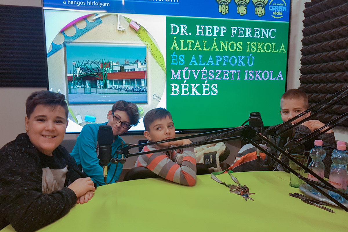 A békési Dr. Hepp Ferenc Általános Iskola és Alapfokú Művészeti Iskola 5. és 6. osztályos, stúdió szakkörös tanulói ismerkedtek a rádiózással a Csaba Rádióban. A stúdió szakkörnek évtizedes hagyományai vannak az iskolában. A tanulók számára különös jelentősége van ennek a foglalkozásnak, melynek végén vizsgát kell tenniük. Ha ez sikerült, akkor ők láthatják el az iskola stúdiós feladatait, az iskolai rendezvényeken ők állítják be a hangosítást. A szakkörön a hangosítástechnika összeállítása mellett megismerkedhetnek a zenei szerkesztéssel, a hangfelvételek vágásával is.