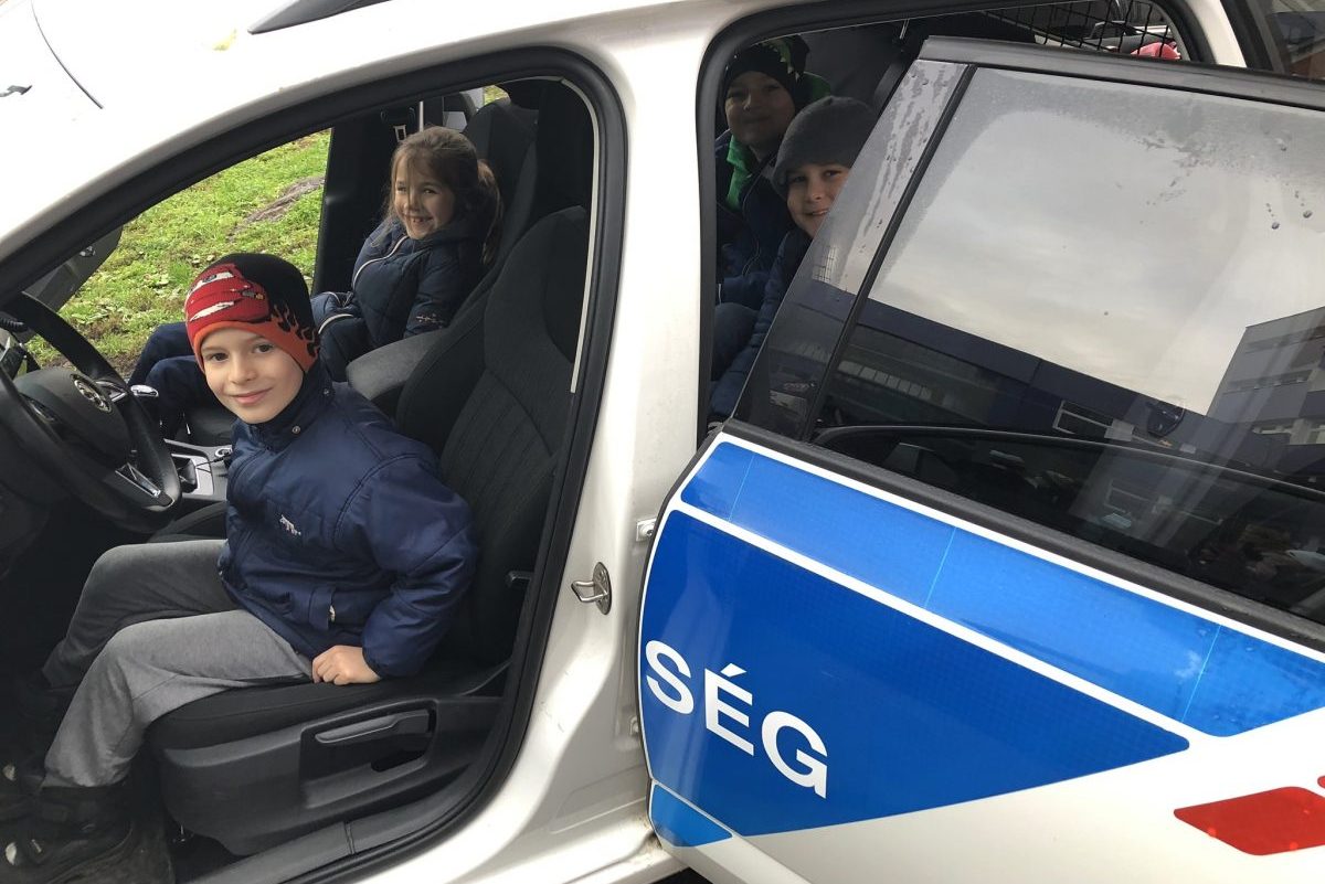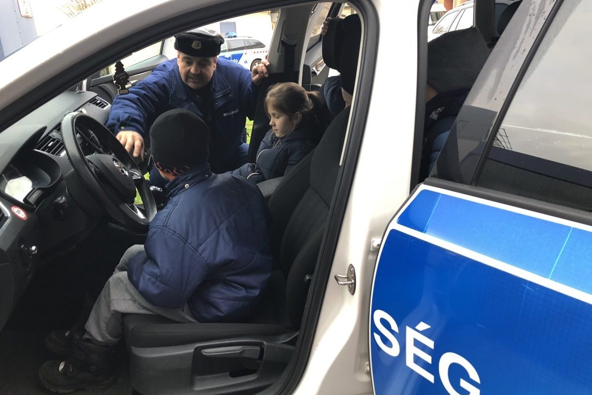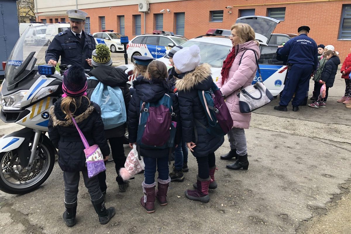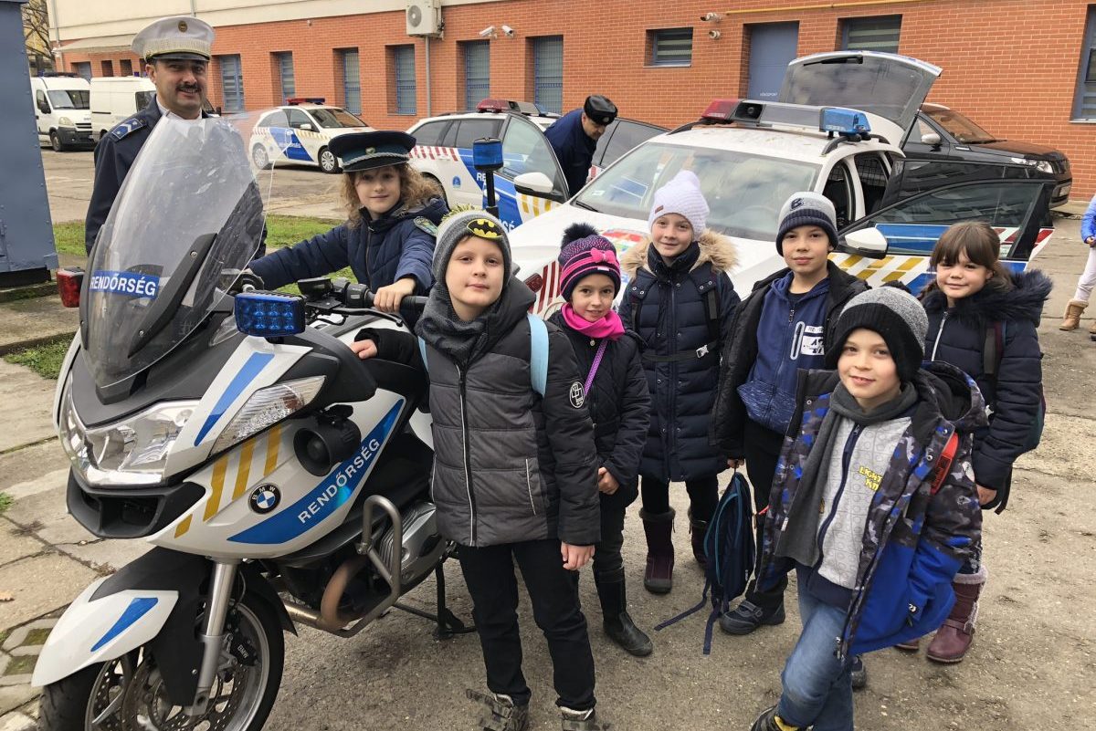 A téli szünet előtt a Békéscsabai Kazinczy Ferenc Általános Iskolából látogattak el kisdiákok a rendőrségre. Egy rendőrautó pillanatok alatt megtelt gyermekekkel, és a rendőrmotor is nagyon népszerű volt.