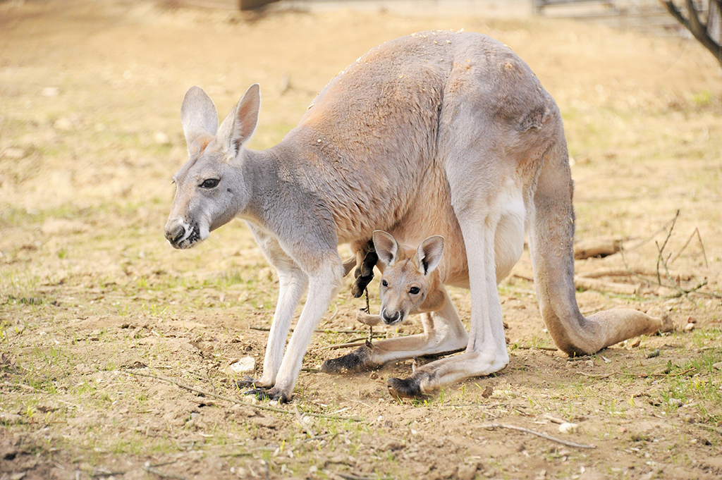 Az országban csak itt látható vörös óriáskenguru tenyészcsapat jól érzi magát a parkban. Állományuk évről évre gyarapszik, az elmúlt időszakban pedig mindhárom ivarérett nősténynek született utóda – közölte Révészné Petró Zsuzsa zoológiai osztályvezető hétfőn az MTI-vel. Elmondta, a kölykök fejletlenül jönnek a világra. Születésükről jó ideig az állatpark szakemberei sem tudtak. Születésük után a csupasz és vak, mindössze 0,75 grammos állatoknak csupán annyi ereje van, hogy bemásszanak anyjuk erszényébe, ahol a mellbimbóra tapadnak és hetven napig el sem eresztik. A biztonságot nyújtó erszényben kezdenek fejlődni és körülbelül százötven naposan dugják ki először fejüket. Ekkor már sokkal jobban hasonlítanak a felnőtt egyedekre – magyarázta a szakember. Emiatt a maguk a gondozók sem tudják még, pontosan hány utód születhetett – jegyezte meg.