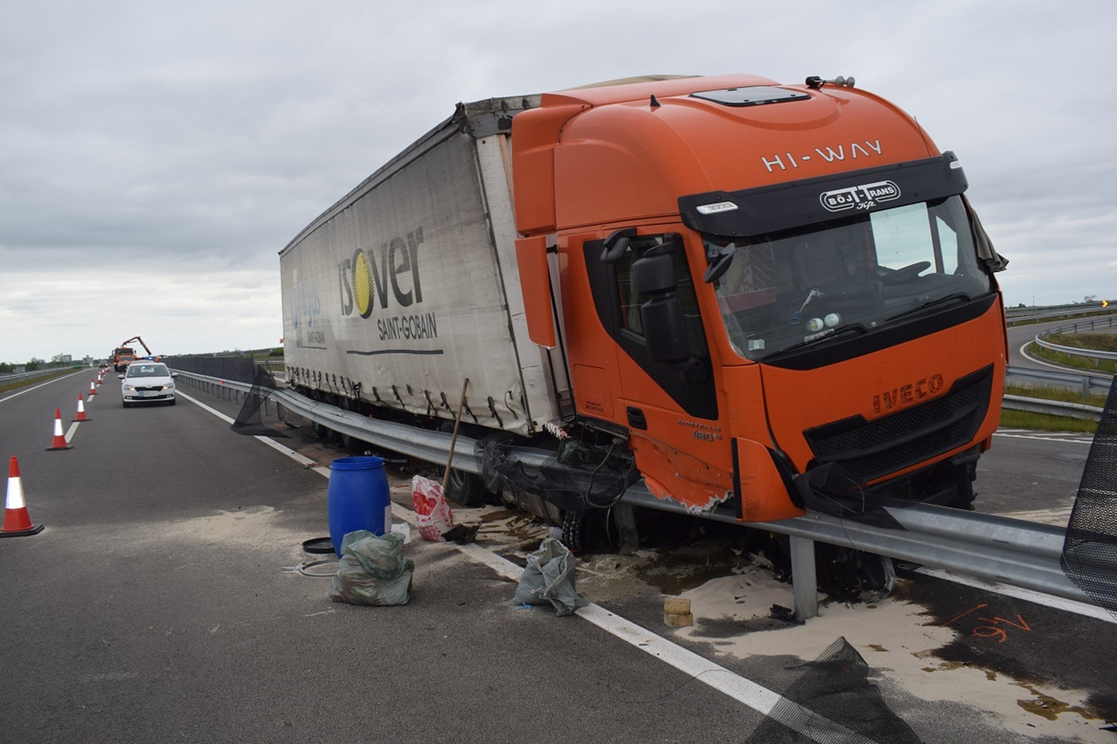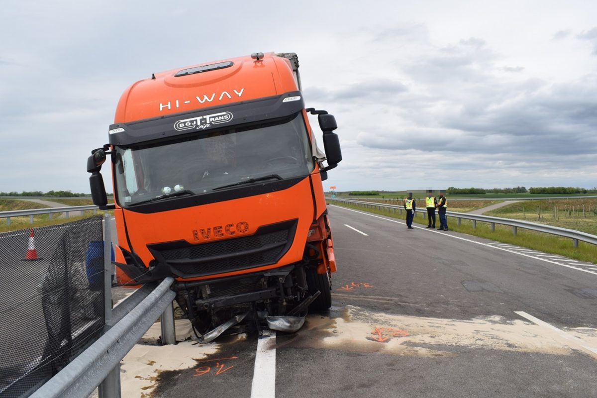 Balesetnél helyszíneltek a rendőrök Kondoros külterületén, ahol egy kamion szalagkorlátnak ütközött. A jármű vezetője könnyebben megsérült.