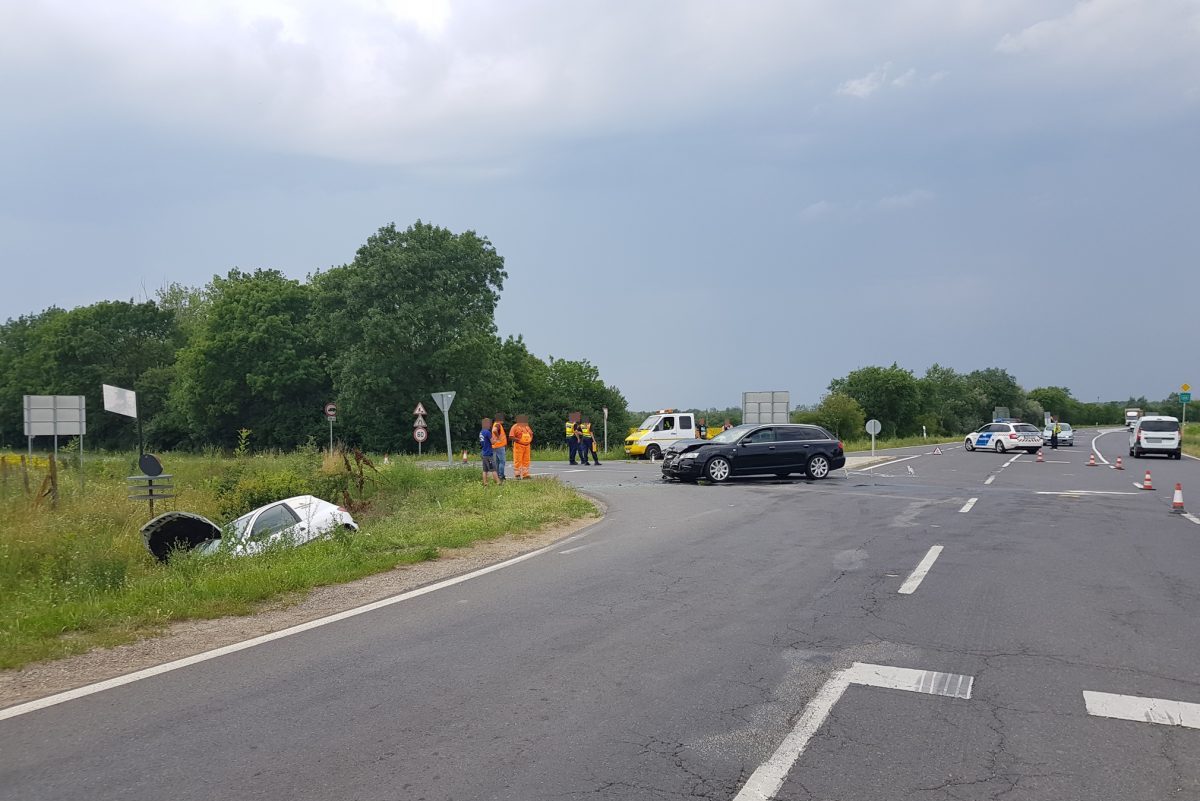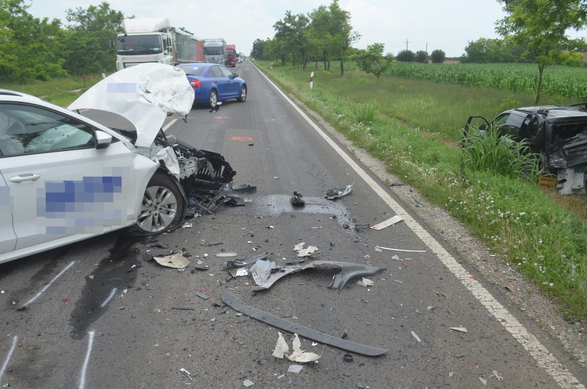 Egy órával később, Gyula külterületén két személyautó ütközött össze. A balesetben az egyik autó vezetője és utasa is könnyű sérülést szenvedett.