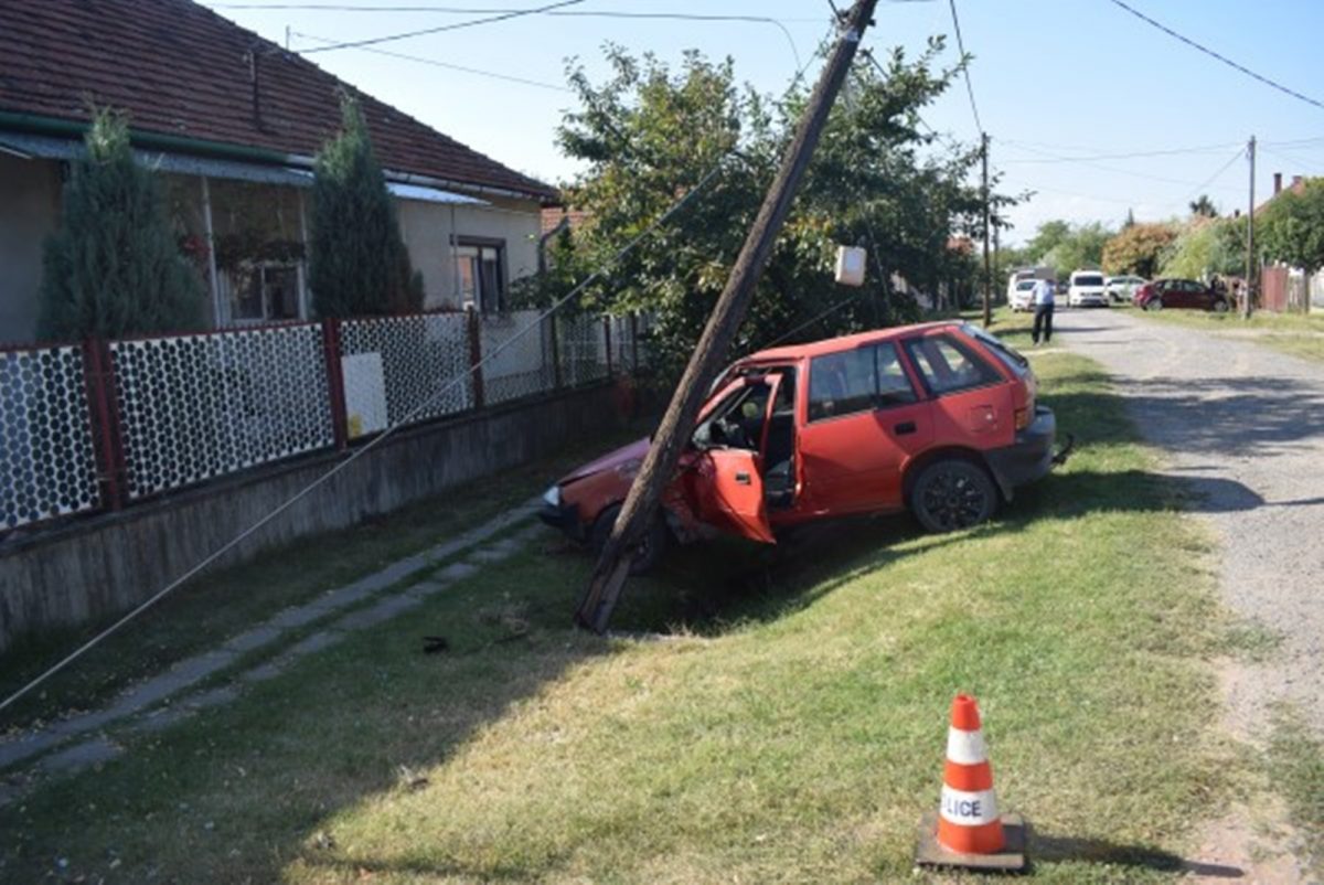 Békésen, a Hegedűs utcában, 14 óra 30 perc körül egy személyautóval közlekedő férfi, aki a gyanú szerint ittasan vezetett, nekiütközött egy oszlopnak. A mentők a férfit könnyű sérüléssel vitték kórházba.