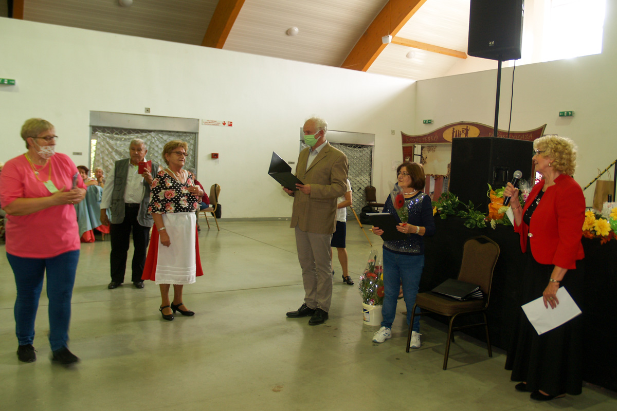 A járványhelyzet miatt külsős vendég vagy fellépő nem vehetett részt az eseményen, így az egyesület saját zenésze szórakoztatta folyamatosan a közönséget. Viszont az, hogy az egyesületek tagjai itt legalább találkozhattak, nagyon boldoggá tett mindenkit. Hiszen az idősekre különösen vigyázni kell ebben a helyzetben, keveset mozdulhatnak ki. Szrenka Pálné nagyon örül annak, hogy a klubokon, csoportokon keresztül sok tagjuk van. A magány és elszigetelődés nem tesz jót az időseknek, de ha csatlakoznak egy klubhoz, azzal programokat, elfoglaltságot, új barátokat kapnak.