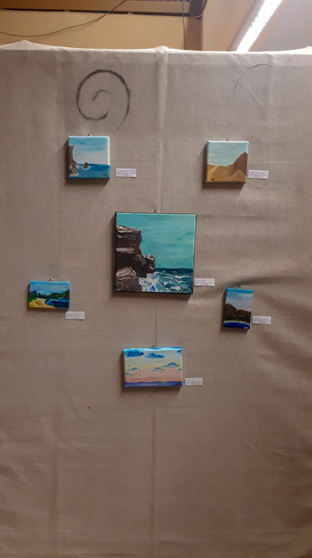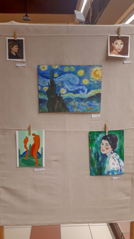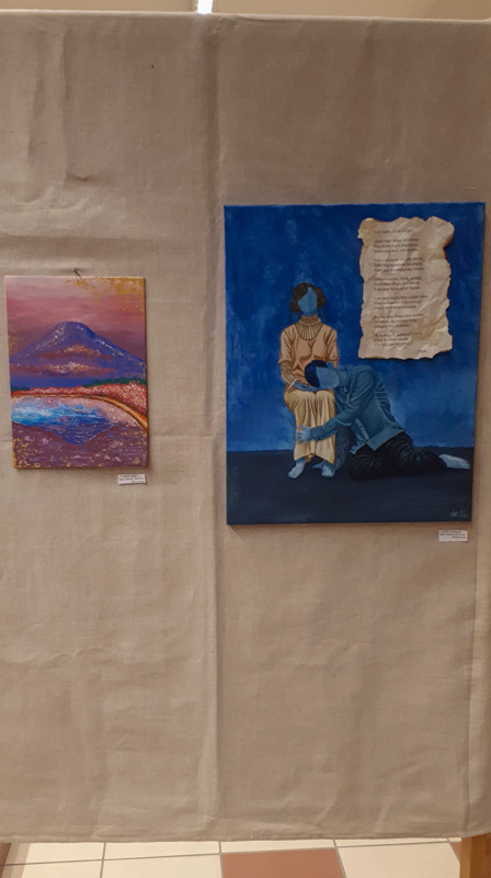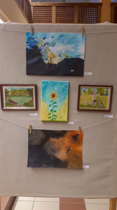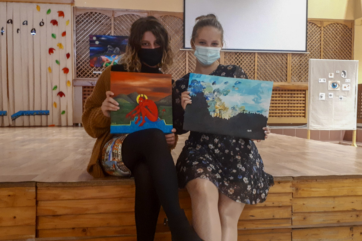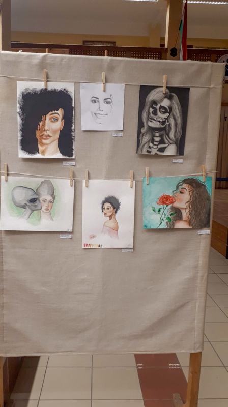 Holop Eszternek volt már korábban két kisebb kiállítása Mezőberényben. Azonban most a saját iskolájában bemutatkozni sokkal nagyobb örömöt okoz a számára. Itt olyan társai is láthatják az alkotásokat, akikkel nap mint nap találkozik. Wéber Pannának ez az első tárlata, viszont már évek óta tervezte a bemutatkozást a nyilvánosság előtt. Rendszeresen részt vett Eszter kiállításain, akkor döntötte el, hogy szeretné egyszer ő is megmutatni magát. Amikor Nógrádi Csilla mesélt nekik arról, hogy szívesen venné, ha a diákok képeit is látnák a galériában, egyből egy közös kiállításon kezdtek gondolkodni.