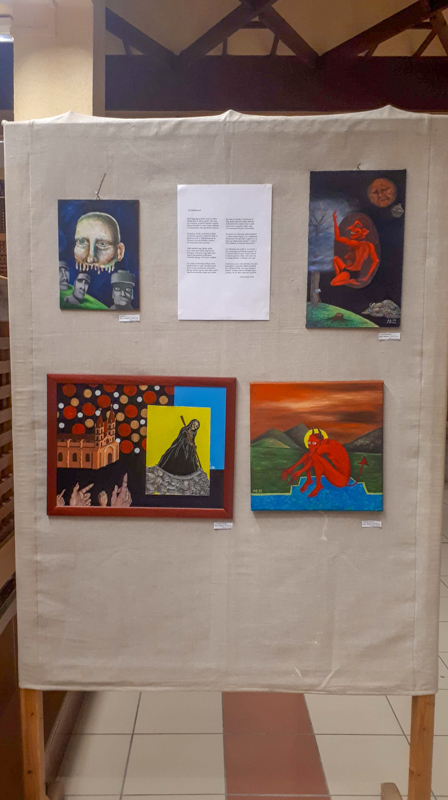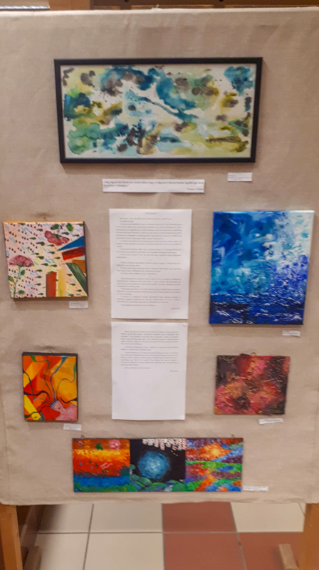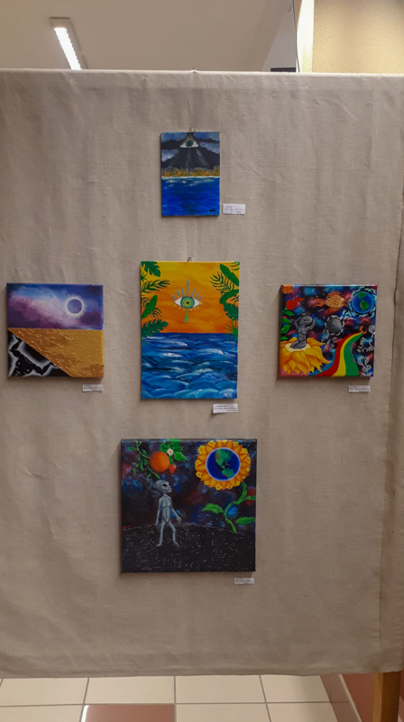 Eszter az életfelfogását, gondolati világát vetíti ki az alkotásokra, Panna inkább az érzelmeit közvetíti általuk. Esztert foglalkoztatják a földönkívüliek, hogyan szólhatnak bele a földi élet alakulásába. Ezt nem csak a képeken, hanem például versekben is kifejti. Ő nagyjából hatvan alkotást hozott a tárlatra, Panna pedig huszat-harmincat, vegyes technikákkal készülteket. Ezek között van egy kép, melyet a testvére készített, egyet pedig közösen hoztak létre.