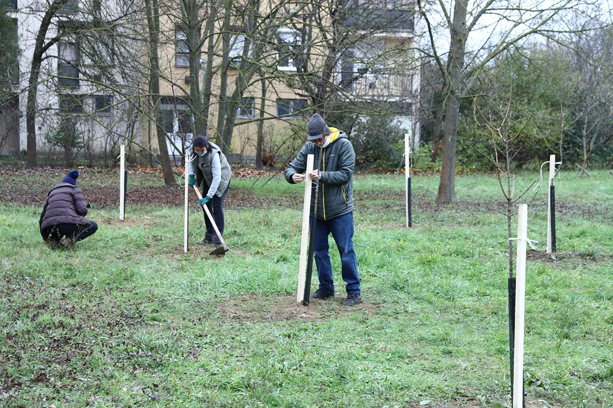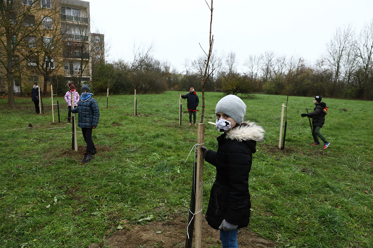 A ma délelőtti eseményen a gyerekeket a faültetésben osztályfőnökeik mellett az iskola igazgatója, Vida András, a 60 000 fa Békéscsabán Mozgalom tagjai, valamint a Közösség a Fejlődésért Egyesület tagjai segítették.