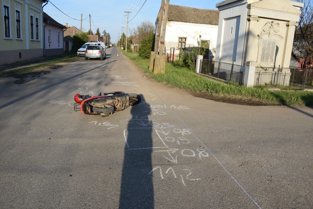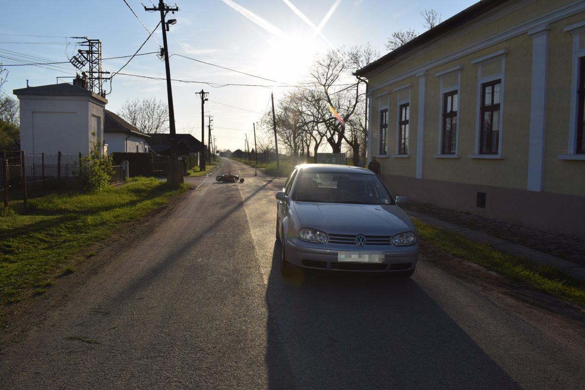 Szintén 17 óra körül Orosházán, a Mátyás király utca és a Horváth György utca kereszteződésében egy segédmotor-kerékpáros és egy személyautó ütközött össze. A segédmotoros kerékpárt vezető férfi, aki a gyanú szerint ittasan vezetett, könnyebben megsérült.