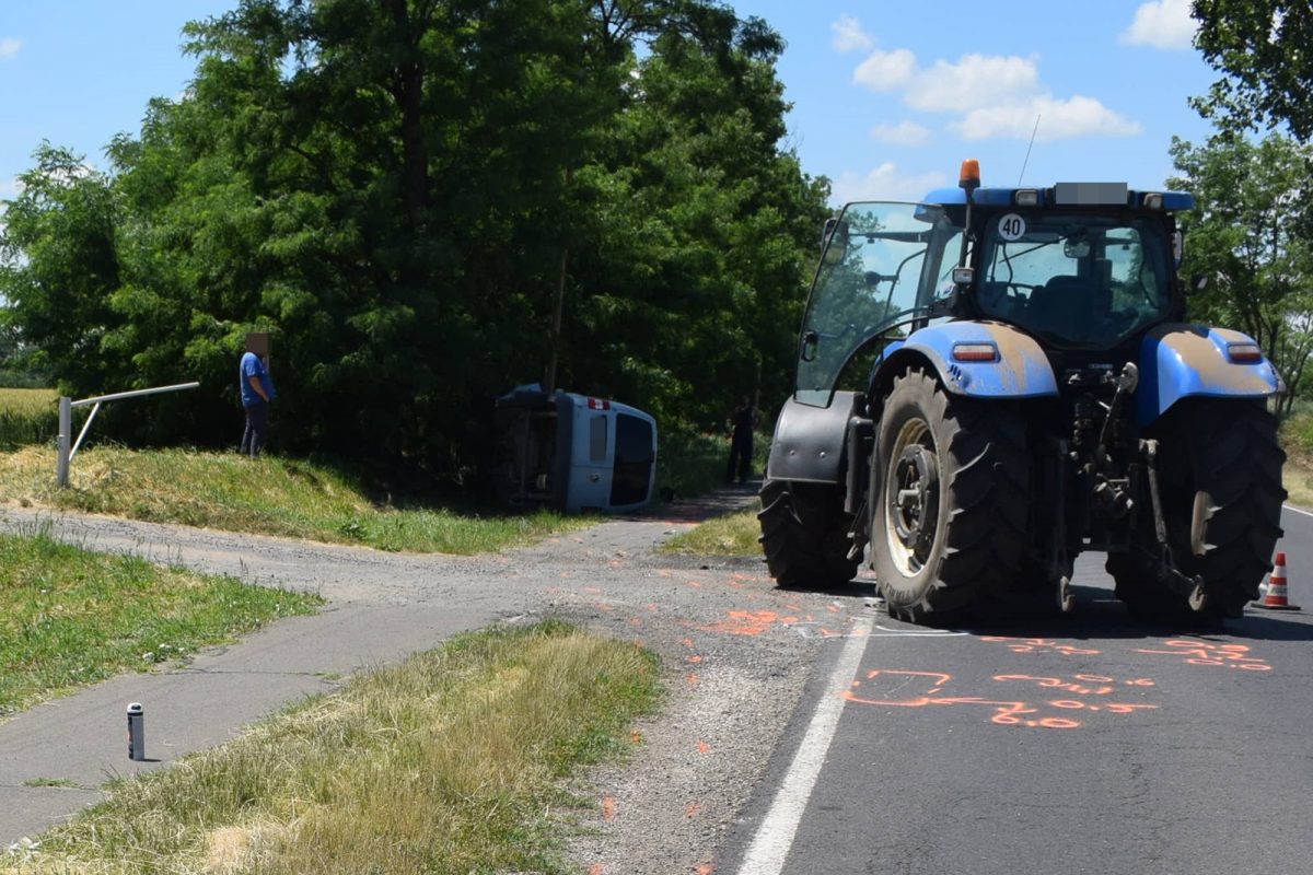 Orosháza külterületén 10 óra 30 perc körül egy tehergépkocsi és egy traktor hajtott egymásnak, előbbi jármű vezetője könnyű sérülést szenvedett.