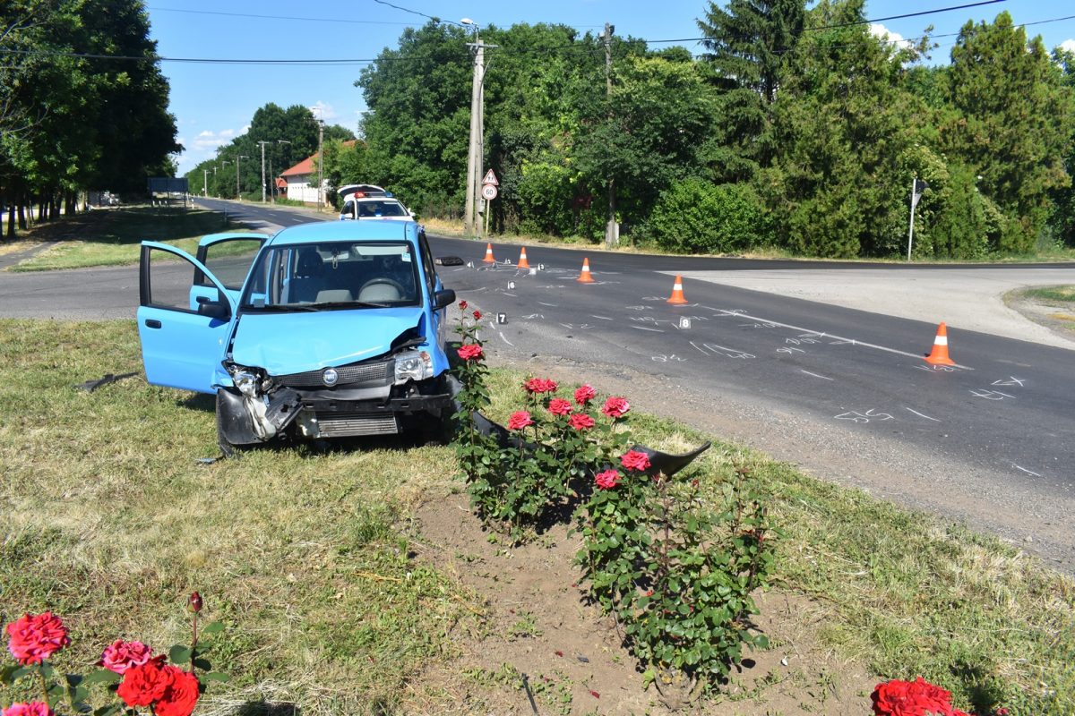 Csabaszabadiban, az Apácai út és a Gerendási út találkozásánál egy személyautóval közlekedő nő nem adott elsőbbséget egy másik autónak és összeütköztek. A vétlen jármű vezetője könnyebben megsérült.