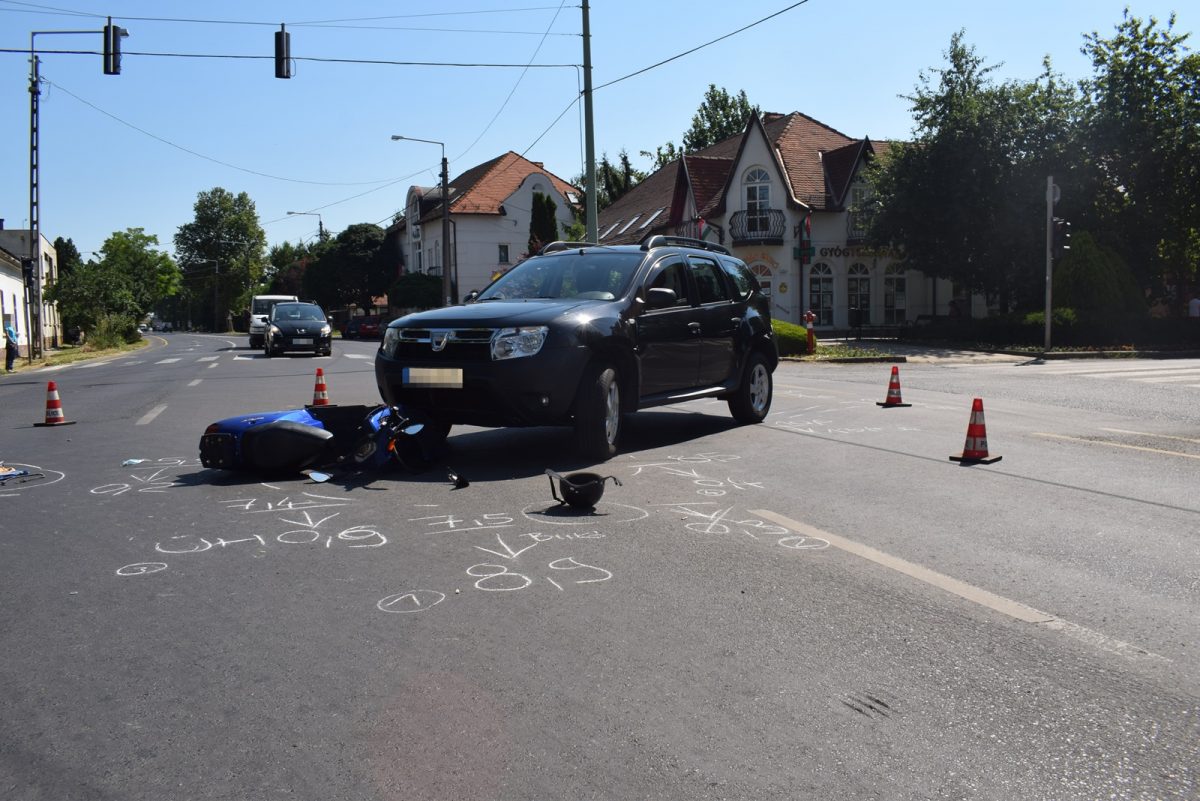 Békés megyében 2021. június 22-én három személyi sérüléssel járó közúti közlekedési balesetről érkezett bejelentés a rendőrségre. Orosházán, a Lehel utca és a Kossuth Lajos utca kereszteződésében 8 óra 45 perc körül egy személygépkocsi vezetője nem biztosított elsőbbséget egy segédmotoros kerékpárral közlekedő férfinak és nekiütközött. A balesetben az utóbbi jármű vezetője könnyebben megsérült.