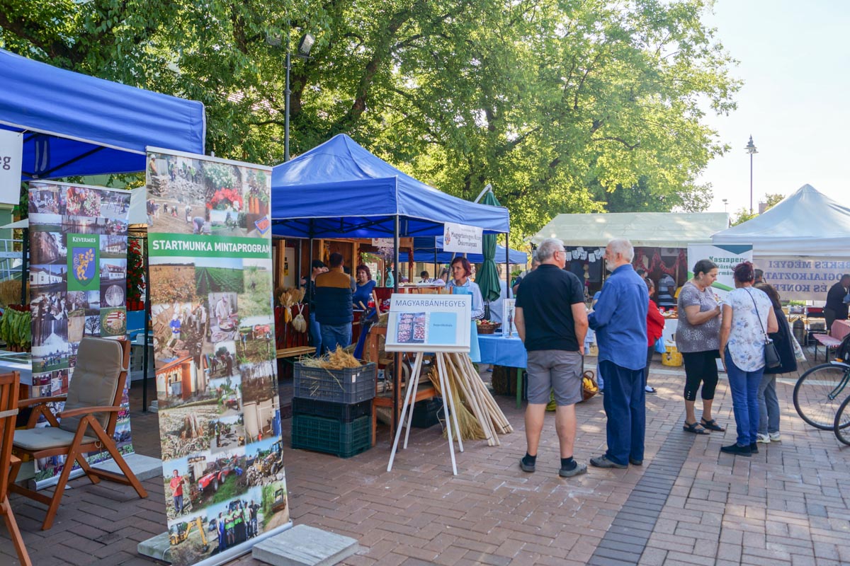 A kiállító standokon a kreativitás, az ötletgazdagság, a szorgalom jelenik meg. A seprű vagy biotégla-készítés, a savanyítás, a befőzés, a tésztakészítés, de az ágaprítás is helyet kapott a főtéren. Az 55 megyei település mintegy 60 standja bizonyítja, hogy a programnak helye van a társadalomban.