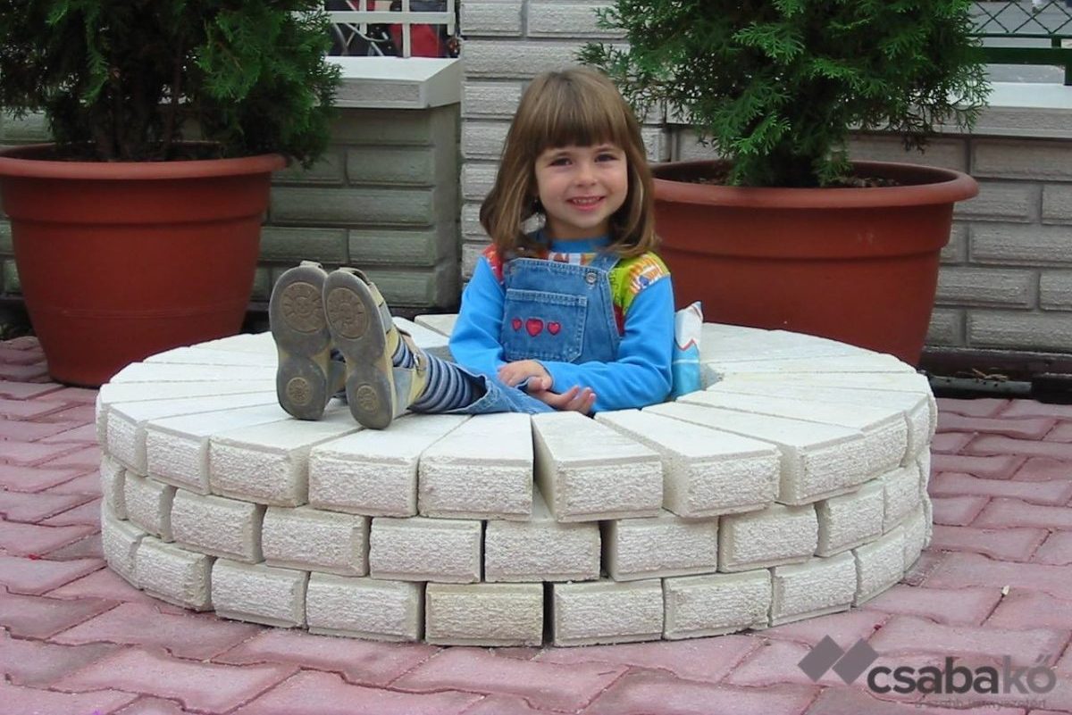 Nagyon sokféle a felhasználása, hiszen a hagyományos „negyedes” tégla a formája. (25x12x6,5cm) Anyagában színezett, nyolcféle színben. Itt kell megemlíteni, hogy ha kerítést építünk, akkor fedlap is kell hozzá. Nos, ezeket is megcsinálják, egyedi méretben, hiszen mindenkinek más-más kerítése van. A fedlapjaik vizorral ellátottak, 3 cm vastagságtól 4, 5, 6, stb. cm is lehet, kinek milyenre van szüksége. Ezért egyedi. És ha már a fedlapokról beszélünk, akkor készítenek ablakpárkányokat, valamint kémény fedlapokat is, bármilyen méretben. Van még egy nagyon kedves termékük, a szalonnasütő, mely kör kialakítását képező elemekkel és természetesen fedlappal együtt kapható.