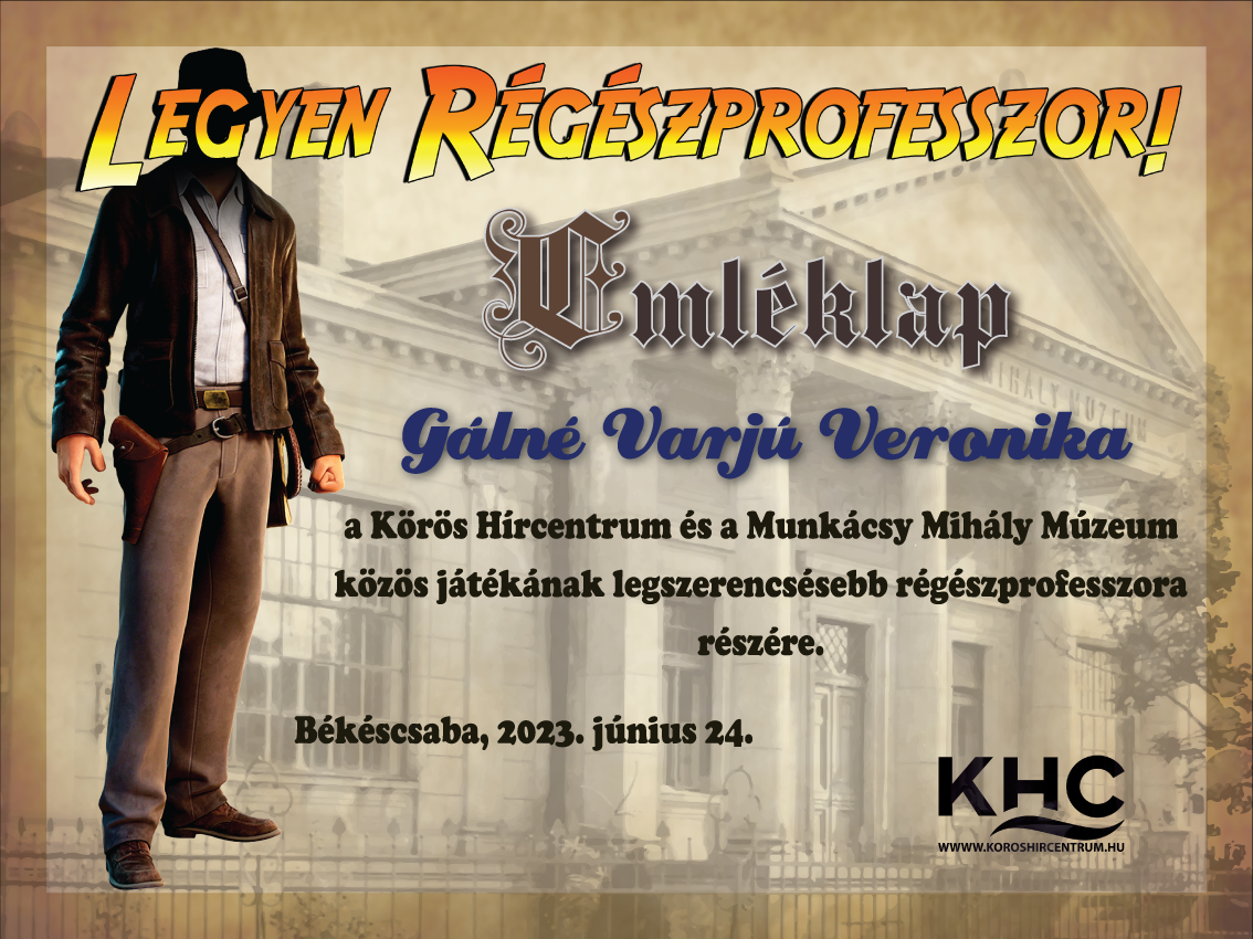 A legszerencsésebb régészprofesszor Gálné Varjú Veronika lett, ő élvezheti családjával a nyeremény hétvégét. Amikor meghallotta, hogy ő nyert, először nem hitt a fülének. Majd megnézte a sorsolást és ekkor már hatalmas volt az öröm. A játékot a hírportál Facebook oldalán látta. Rendszeres résztvevője a Körös Hírcentrum játékainak, de eddig nem volt szerencséje ilyen értékű nyereményhez. A hétvégét a párjával kettesben töltik majd el.