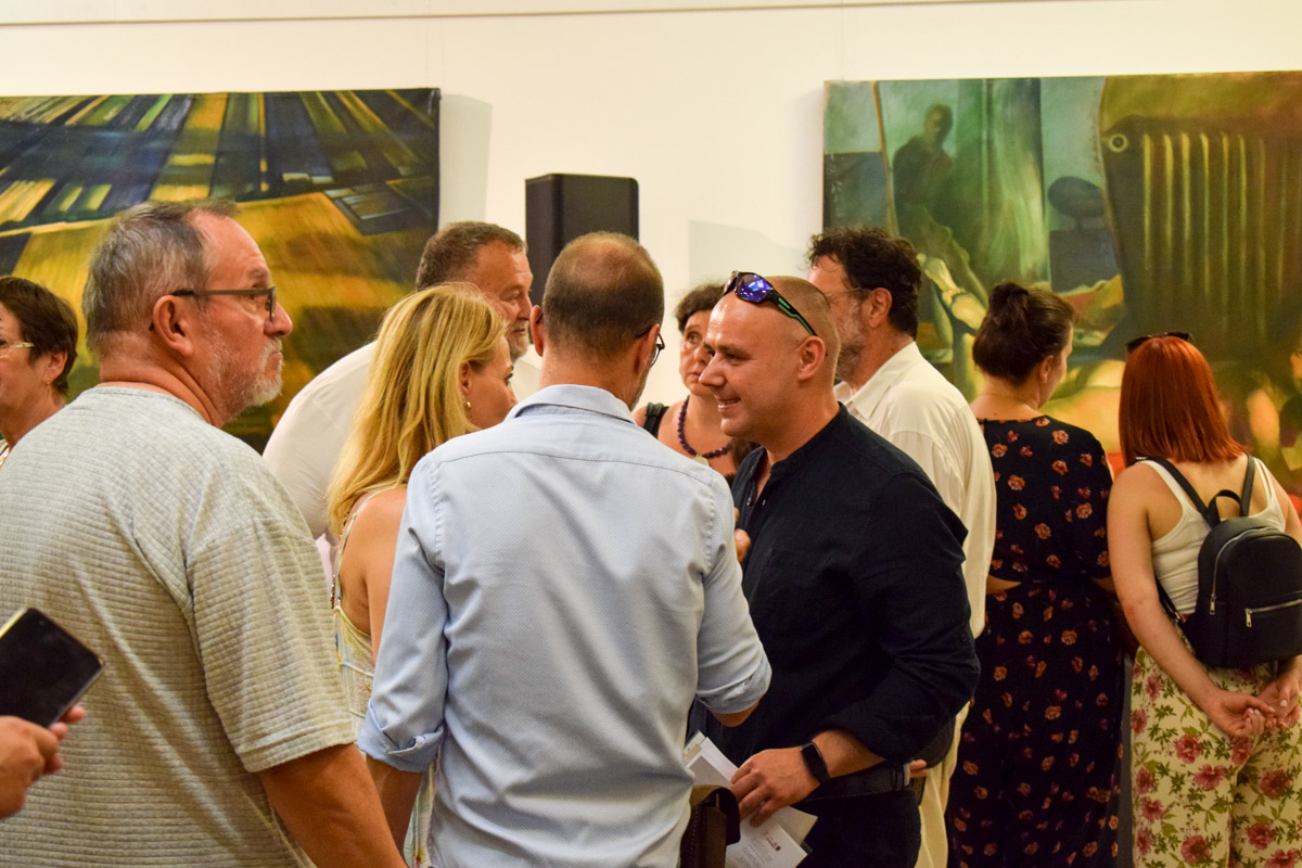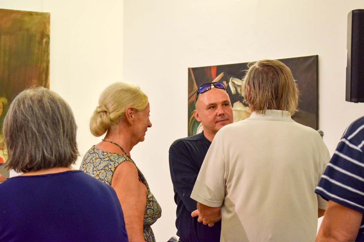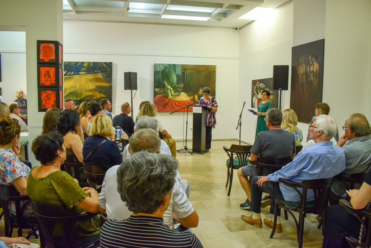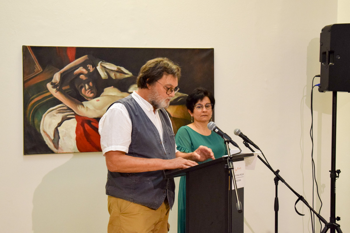 „Nagyszerű dolog a festő számára, ha egy kiállítás alkalmával sosem volt egymás melletti kapcsolat jön létre a képeiből. Felmerül egy újszerű párbeszéd lehetősége, melynek során váratlan összefüggéseket teremtve elindítanak egy eddig ismeretlen világot. Ez a párbeszéd ennek a múzeumnak a falai között, ezen a kiállításon elindul és sok meglepetést tartogat” – emelte ki beszédében Nagy Gábor Munkácsy-díjas festőművész, aki még a Magyar Képzőművészeti Főiskolán ismerte meg a békéscsabai alkotót, az évek során a tanár-diák kapcsolatból szoros barátság alakult.