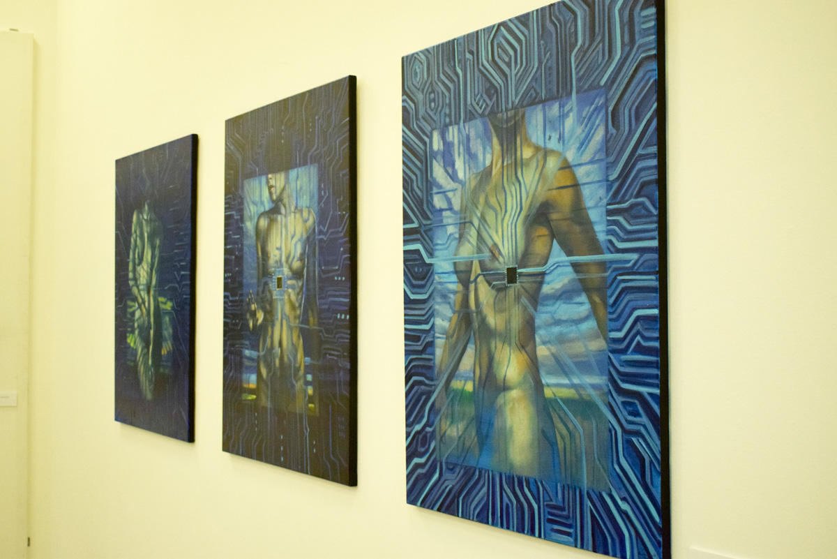 A családi festményei mellett a „Me tangere”, azaz „Érints meg” címet viselő aktsorozatának darabjai kapnak szerepet, melyeket még a pandémia, az elszigeteltség és az eltávolodás időszakában alkotott meg. Talán éles váltásnak tűnhet a két sorozat egymás mellé állítása, ám az alkotásokból nagyon szépen kirajzolódik a művész által képviselt értékek.