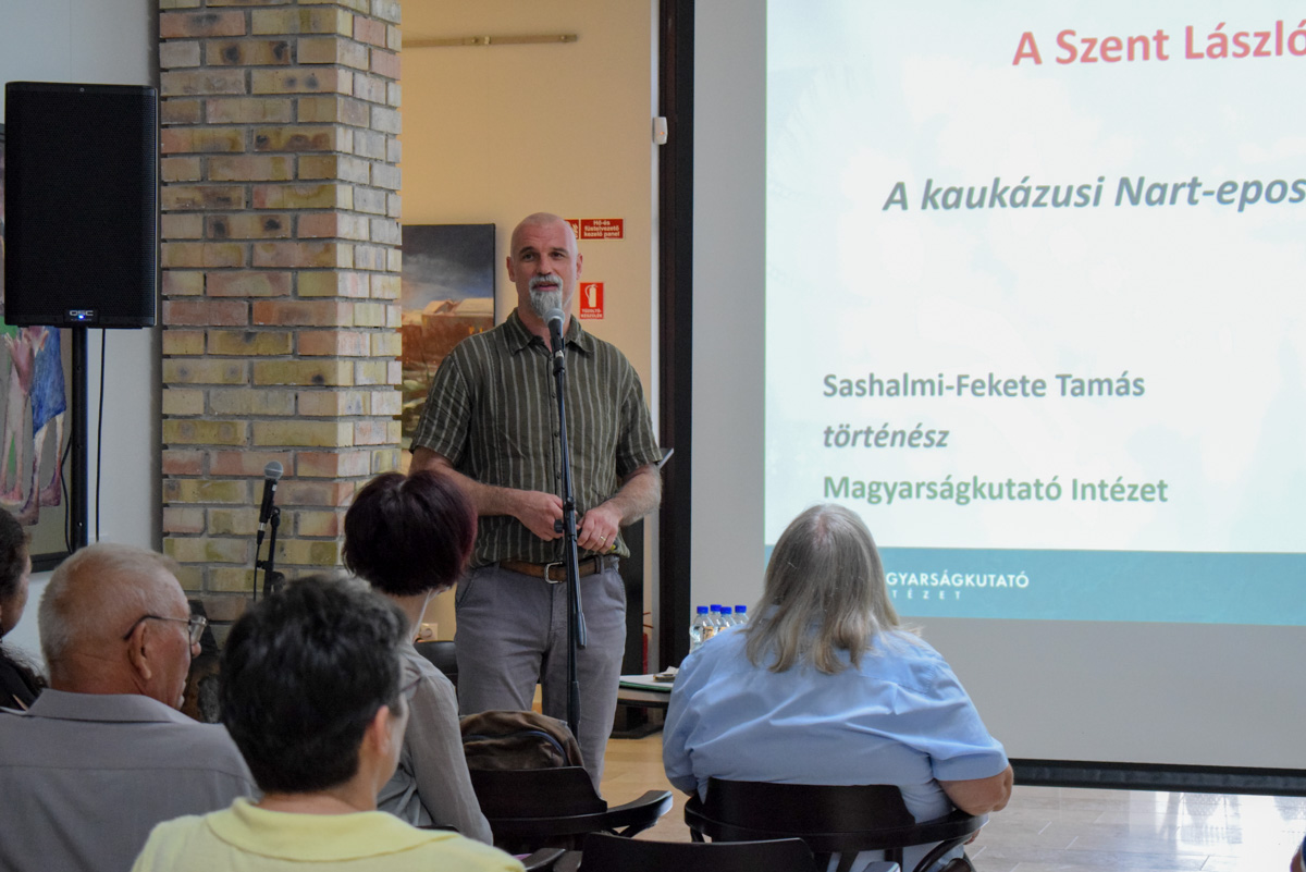 Először Medgyesi Pál régész, a múzeum nyugalmazott igazgatóhelyettese tartott tematikus tárlatvezetést Szent László korának leletei Békés vármegyéből címmel, a múzeum állandó kiállításának erre vonatkozó részében, bemutatva a Békés vármegyében talált Szent László korabeli leleteket. Az akkori emberek vallási és temetkezési szokásairól és mindennapi életükről is sok érdekességet árult el. Az előadását személyes tapasztalatai még különlegesebbé tették, a legtöbb tárgyi lelet feltárásában ugyanis ő maga ugyancsak részt vett.