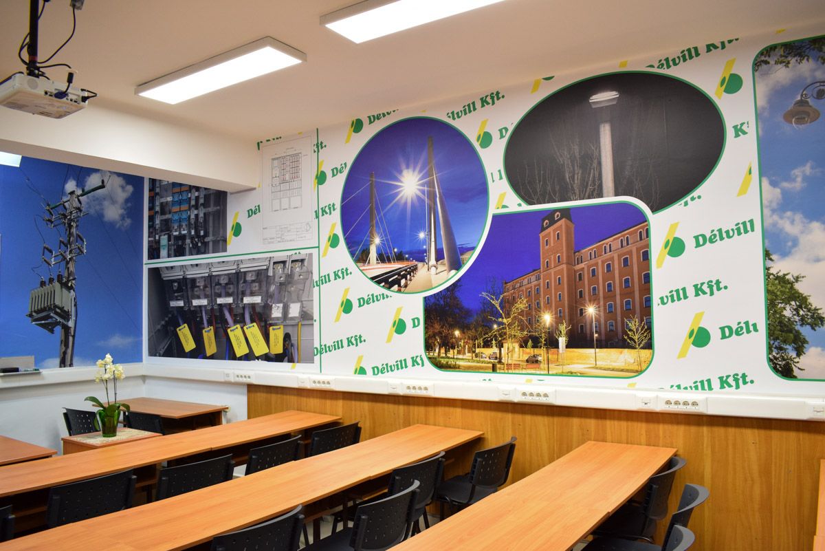 Tóthné Uhljár Gyöngyi, a Délvill Kft. beszerzési vezetője a cég és az oktatási intézmény közös múltját átgondolva kiemelte, szakmai napokat már többször szerveztek a trefortosoknak. Majd kaptak egy lehetőséget arra, hogy egy terem felújításával be is „költözzenek” az iskolába. A fejlesztésnek köszönhetően új padok, székek, szekrények és függönyök kerültek a helyiségbe. A terem falait a cég munkáiból összeválogatott képek díszítik.