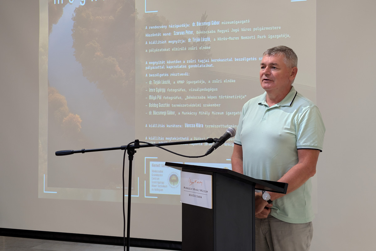 Dr. Tirják László, a Körös-Maros Nemzeti Park Igazgatóság igazgatója, a zsűri elnöke elárulta, annak idején ő maga is a Munkácsy Múzeumban ismerkedett először preparátumokon keresztül a madárvilággal. Ma már sajnos igazgatóként nem tölthet annyi időt a természetben, amennyit szeretne. Viszont ezek a képek pont ezeket a csodákat mutatják be. Az ártéri erdők állatvilága, a holtágak, a szikes puszták mind-mind helyet kaptak a tárlaton.