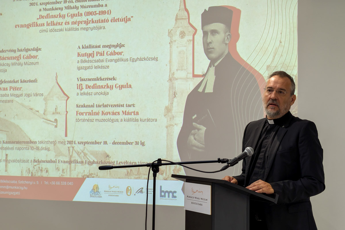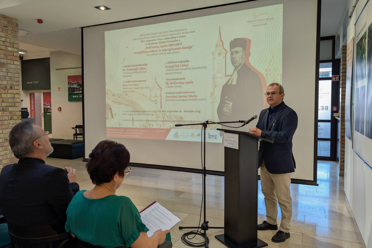 Közel 20 évvel ezelőtt volt utoljára Dedinszky-kiállítás a Munkácsy Múzeumban – emelte ki megnyitójában dr. Bácsmegi Gábor. A lelkész behatóan foglalkozott Békéscsaba történelmével, néprajzával, hagyományaival, több könyvet is írt ezekben a témákban. Az igazgató például a kolbászt is a Dedinszky Gyula által lejegyzett recept alapján készíti. Úgy látja, egy fantasztikus kiállítás született, mindenki figyelmébe ajánlotta.