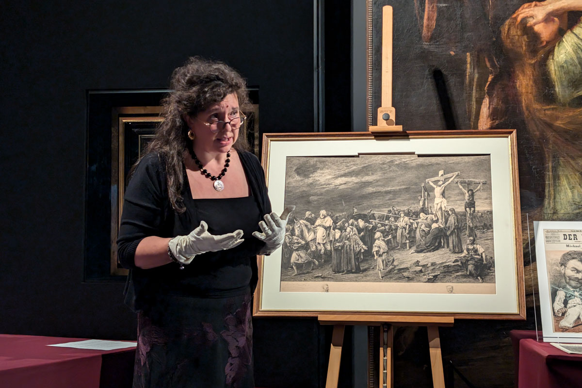 Gyarmati Gabriella művészettörténész rávilágított, az egyik rézkarc, a Golgota másolata még a festő életében készült el, igazán festményszerű, magas minőséget képvisel. A fényképek ugyancsak különlegesek, a mester életének különböző fázisaiban készültek. Az egyik legtalányosabb darab az új tárgyak között éppen az a levél, amelyet dr. Bácsmegi Gábor is említett korábban, Cécile Papier, Munkácsy özvegye tollából. Ebben a szövegben szó esik például arról is, hogy mennyire érdeklődik Magyarország, az ottani történések iránt. Ebben a levélben írja Munkácsyról, hogy ő volt az, aki megtanította őt szeretni. Ez a kijelentés azért érdekes, mert Cécile-t nagyon sok kritika érte már a saját korában. A múzeum és a város nagy hálával tartozik neki, hiszen nélküle nem indult volna el a relikviagyűjtemény – emelte ki Gyarmati Gabriella.