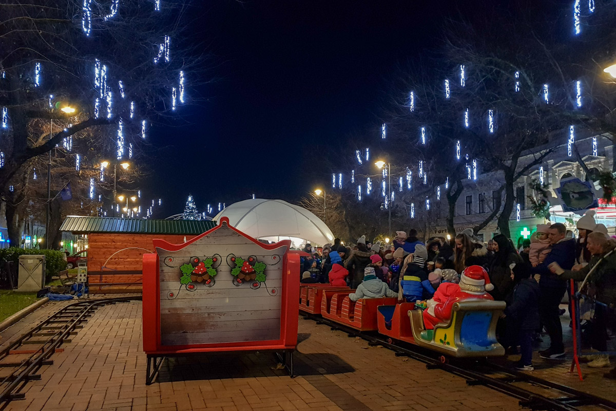Az este programja a Penza Lakótelepi Óvoda Micimackó nagycsoportos gyermekeinek Karácsonyi időutazás című műsorával kezdődött. Majd Varga Tamás, a város alpolgármestere ünnepi beszédében arra hívta fel a figyelmet, hogy akár a családok, Békéscsaba is egész héten készült, szépült erre a vasárnap estére. A Szent István téren elfoglalta helyét a karácsonyfa, megérkeztek a csillogó díszek, a körhinta, a kisvasút.