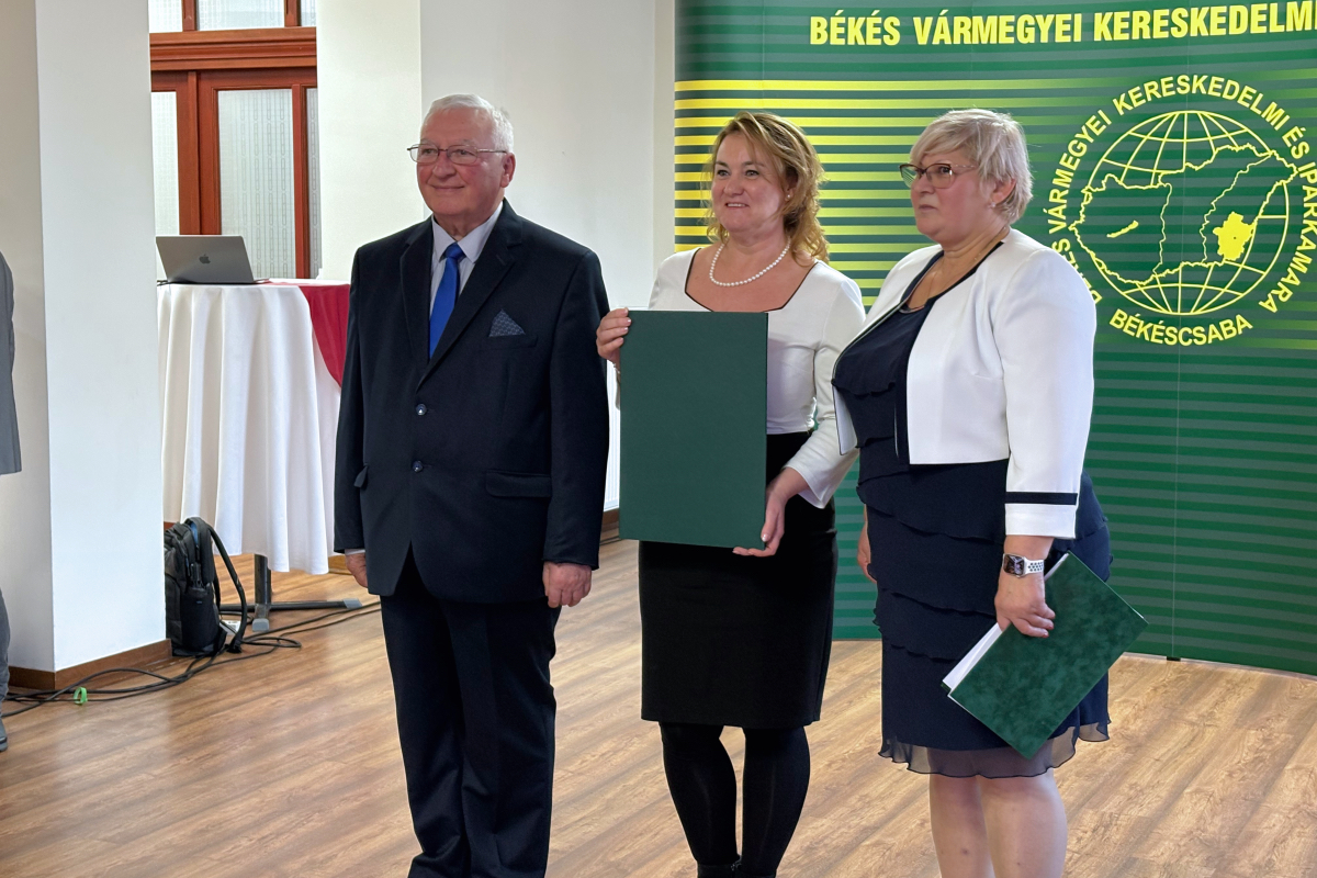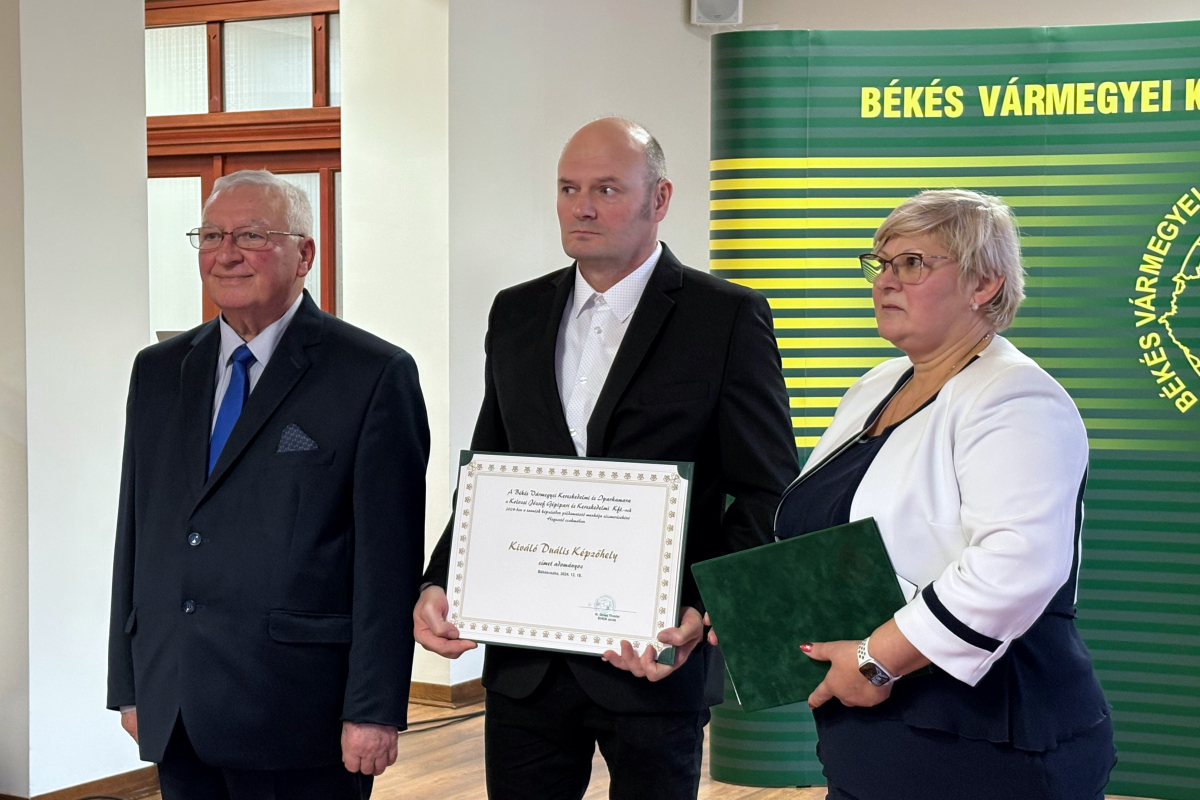Hatos Istvánné, a Békés Vármegyei Kereskedelmi és Iparkamara szakképzési bizottságának elnöke kifejtette, immár 12. alkalommal ismerhetik el azon duális képzők munkáját, akik élen járnak a szakképzésben tanuló diákok ismereteinek bővítésében. Összesen öt képzőhelyet és kettő gyakorlati oktatót díjaztak. Utóbbi esetében egyet a kis-, egyet pedig a nagyvállalati kategóriában. Kitüntettek vállalkozásokat az építőiparban, a gépiparban, illetve a fémiparban. Többen már nem első alkalommal vehették át ezt az elismerést.