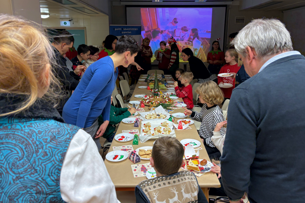 A karácsony jegyében telt az este, a termet különböző szekciókra osztották, mindegyik valamilyen szempontból az ünnepi hangulatot idézte meg. A gondozók alkotta manó osztag mindenféle csínytevésen törte a fejét, illetve különböző kreatív tevékenységekkel is várták a kicsiket-nagyokat. Emellett a diabéteszes gyermekek számára olyan finomságokkal készültek, amiket bátran fogyaszthattak. Kiírták az ételek szénhidráttartalmát is, hogy azt követni tudják a családok. Valamint a nem cukorbeteg testvéreknek, szülőknek retró zsíros kenyér és más ízletes ételek kerültek az asztalra. Az este folyamán Hevesi Imre ugyancsak zenélt a családoknak, aki már visszatérő vendég az egyesületnél.