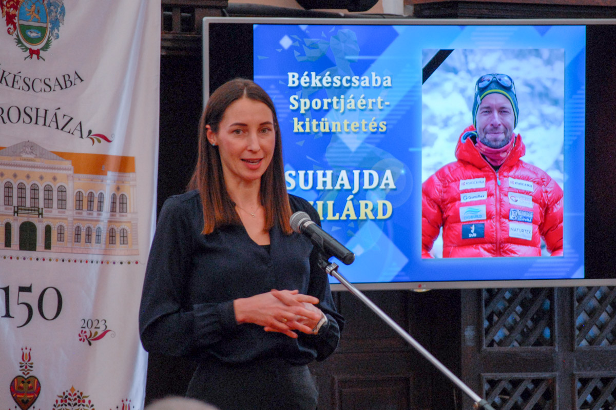 Suhajda Szilárd ugyancsak csabai születésű, 12 éven keresztül a Belvárosi Általános Iskola és Gimnáziumban tanult. Pedagógusként végzett, de elhagyta a pályát, elkötelezte magát a hegymászás mellett. 2014-ben Varga Csaba nagyváradi hegymászóval felmásztak a 8051 méteres Broad Peakre oxigénpalack használata nélkül. 2019-ben első és azóta is egyedüli magyarként ugyancsak kísérő és oxigén nélkül mászta meg a K2-őt, majd 2022-ben, ugyanígy a Lhocét. A Mount Everest 2023-as expedíciója lett az utolsó nagy kalandja, május 24-én szakadt meg vele a rádiókapcsolat. A mentőcsapat nem találta meg, a keresést így befejezték. Suhajda Szilárd valódi lokálpatrióta volt, rendszeresen visszatért Csabára élménybeszámolókat, motivációs előadásokat tartani. A rendezvényt megelőzően avatták fel az emléktábláját a korábbi iskolájában. A városi elismerést Szilárd felesége, Legindi Tímea vette át.