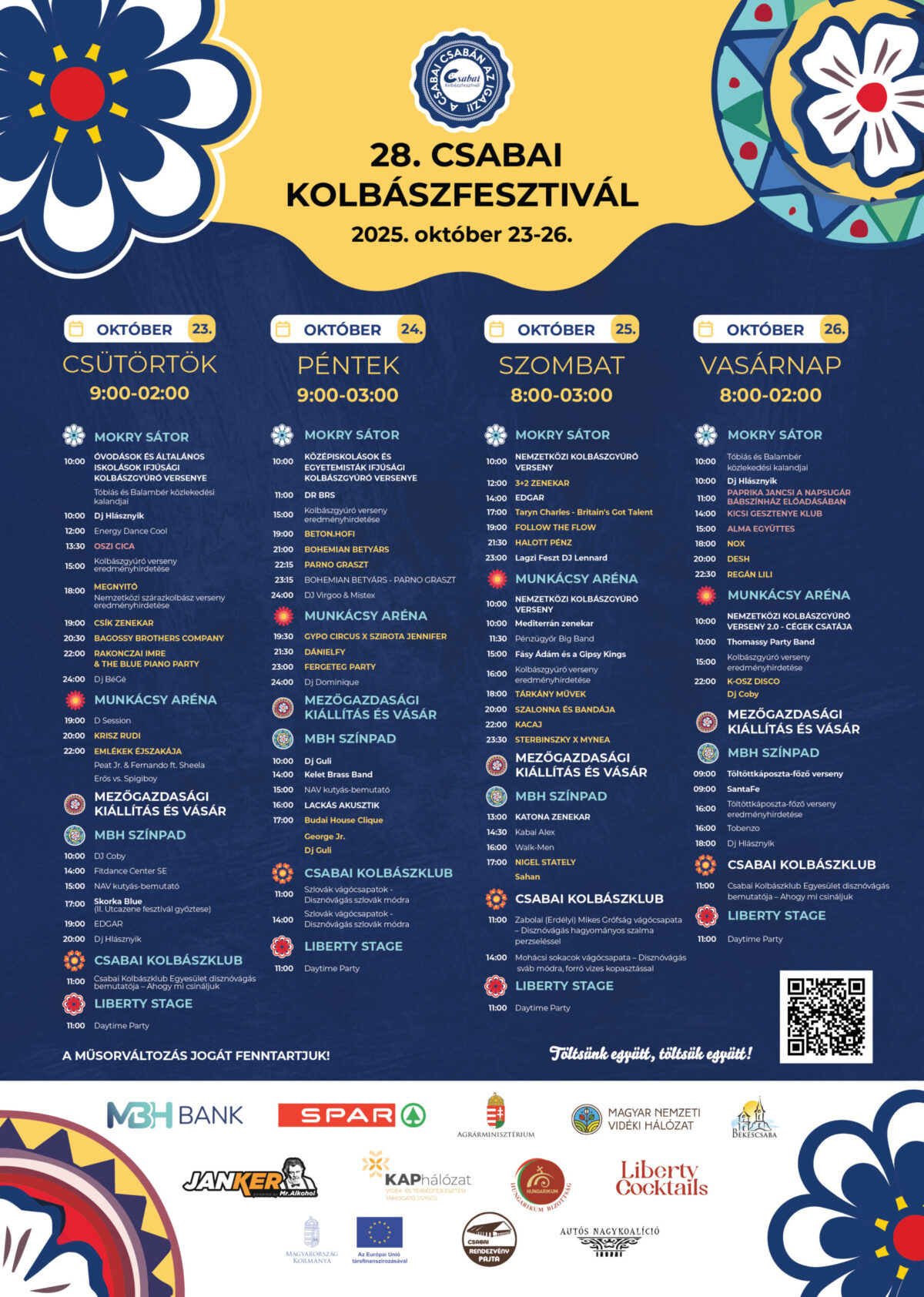 Idén már 28. alkalommal valósulhat meg a Csabai Kolbászfesztivál, középpontba állítva a méltán híres, itthon és külföldön egyaránt elismert hungarikumot. A többnapos esemény során nem maradhat el a gyúrás, amelyből kicsik és nagyok egyaránt kiveszik a részüket, valamint a különböző zenei koncertek sem.