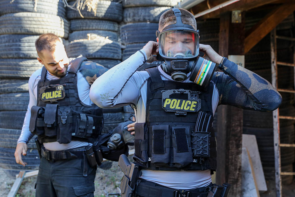 „Különleges körülmény, hogy a lövészeti feladatok egyes elemeit gázálarcban kell végrehajtani, amit szintén szokni kell. Fontos momentum a gázálarc elővételének, pontos és gyors felhelyezésének gyakorlása, mert az a versenyző, aki nem rutinos, súlyos másodperceket veszíthet a verseny során. A maszk viselése önmagában is kihívás, mert nehezíti a légzést, valamint a célzás kidolgozását – magyarázza a csapatkapitány, aki már négyszer járt a SWAT-versenyen.”
