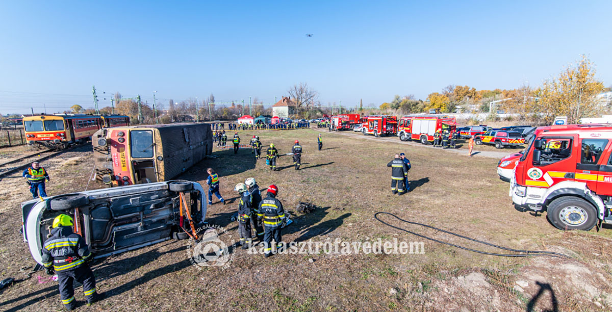 Évi rendszeres katasztrófa-felszámolási együttműködési gyakorlatot tartott november 5-én Békéscsabán a BM Országos Katasztrófavédelmi Főigazgatóság, a Békés Vármegyei Katasztrófavédelmi Igazgatóság és a MÁV Zrt. A gyakorlaton a Magyar Vöröskereszt, az Országos Mentőszolgálat, valamint a rendőrség szakembereivel együtt összesen csaknem százhúsz ember vett részt. Az eseményeket a helyszínen követte figyelemmel a BM OKF országos tűzoltósági főfelügyelője és a vármegyei katasztrófavédelmi igazgató.