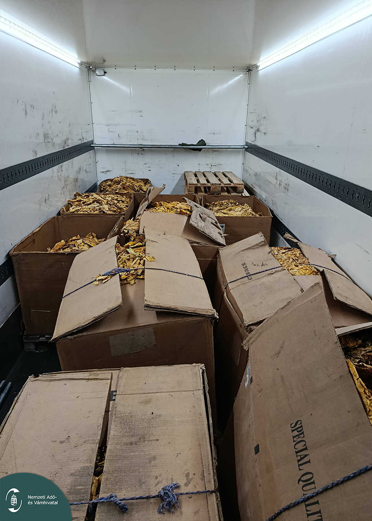 Az ingatlanban hatalmas zsákok, műanyag hordók és ipari méretű kartondobozok sorakoztak, tele szárított dohánylevéllel. A nő a feketepiaci áru eredetét nem tudta igazolni. A pénzügyőrök összesen 674,3 kilogramm szárított dohánylevelet foglaltak le. A nő ellen jövedéki törvénysértés és jövedékkel való visszaélés elősegítése bűncselekmény miatt indult eljárás, amiért az elkövető akár 70 millió forint bírságra is számíthat – áll a közleményben.