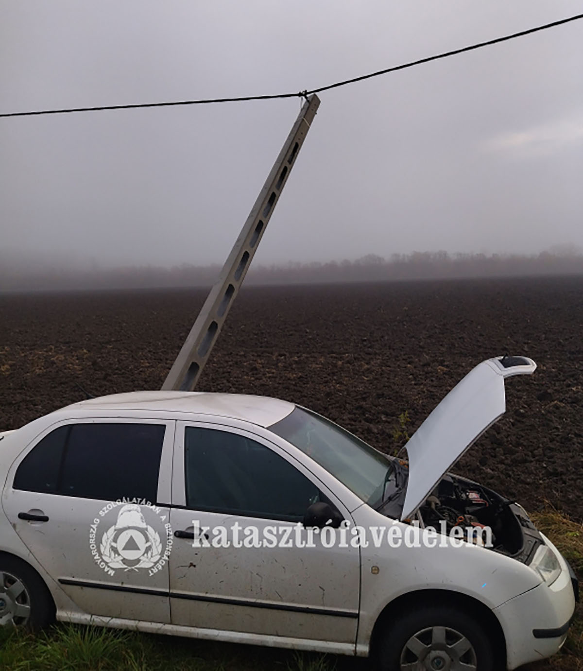 A járműben egy felnőtt és egy gyermek utazott, akik a baleset után önállóan elhagyták az autót. Az ütközés erejétől a villanyoszlop kitört, és csak a vezetékek tartották meg.