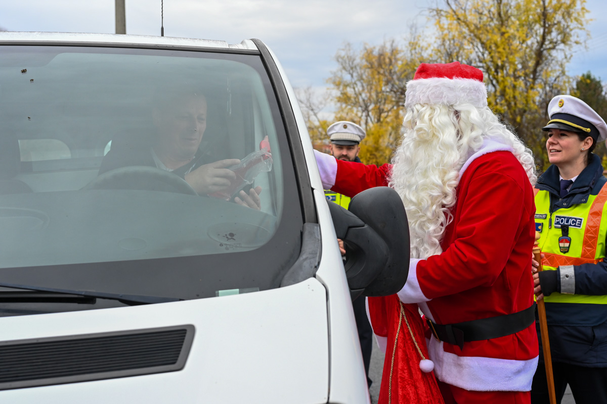 Békéscsabán, a Gyulai úton végeztek általános közúti ellenőrzést a Békés Vármegyei Rendőr-főkapitányság kollégái. Ellenőrizték az iratokat, szondát fújattak a sofőrökkel. Akinél a rendőrök mindent rendben találtak, az autóvezetők hasznos, piros színű apróságokkal – lámpákkal, jégkaparókkal, tollakkal – gazdagodtak. Mindenki örömmel fogadta a váratlan figyelmességet. A Mikulásnak azok az autósok, buszt vagy teherautót vezető sofőrök is örömmel integettek, akik csupán elhaladtak az ellenőrzési pont mellett.